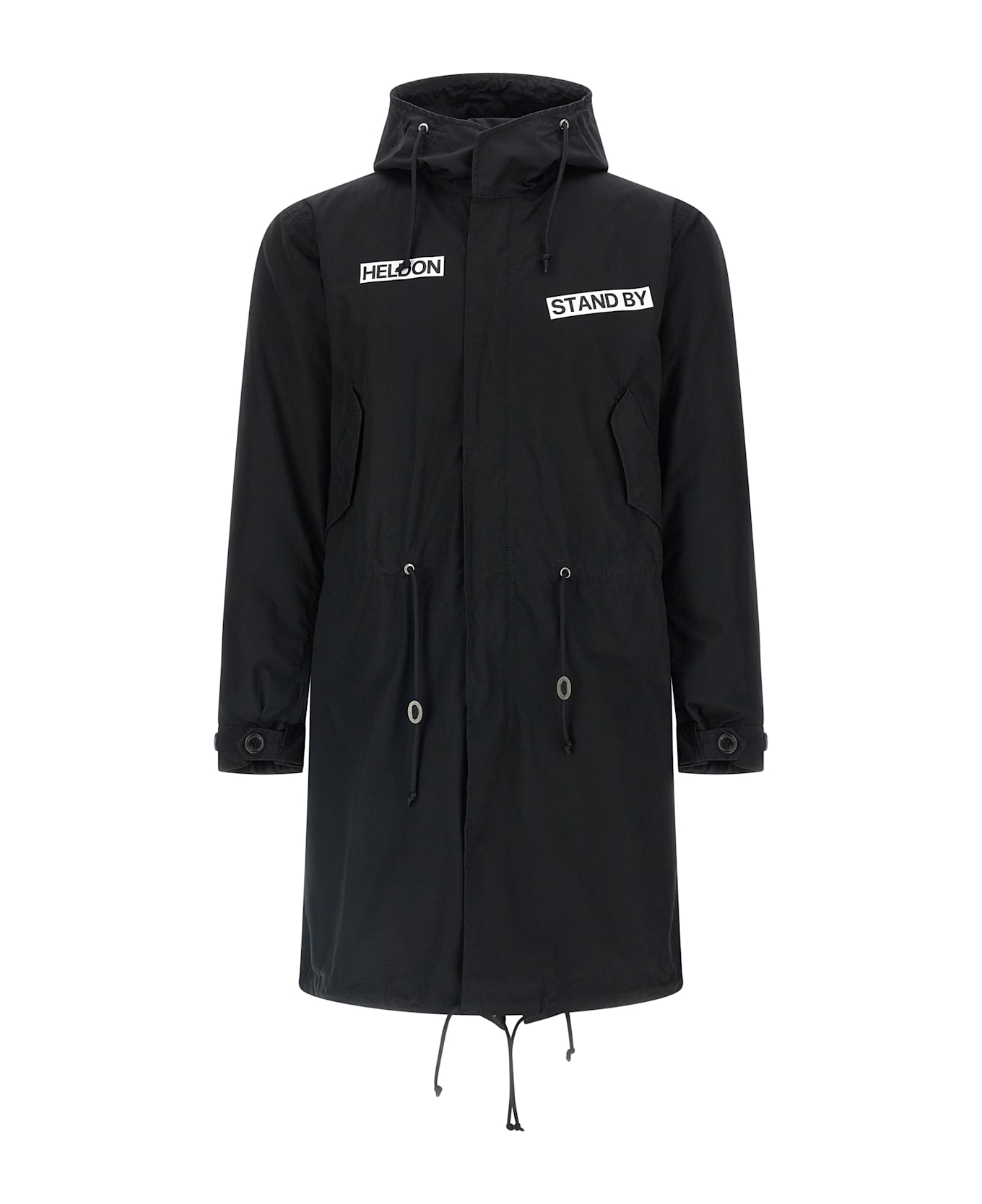 'UC2E4310' 2-in-1 parka consisting of cotton exterior, prints with works by French artist HELDON, adjustable hood, high neck with snap button closure, zip closure and front snap buttons, pockets, drawstring at the waist, long sleeves with adjustable cuffs, drawstring at the hem with back dovetail and removable quilted nylon inner part, Crew neck, front snap button closure, long sleeves.