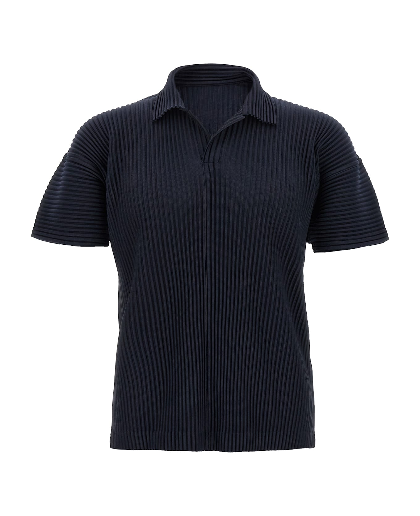 Polo shirt in pleated fabric, V-neck with collar, short sleeves.