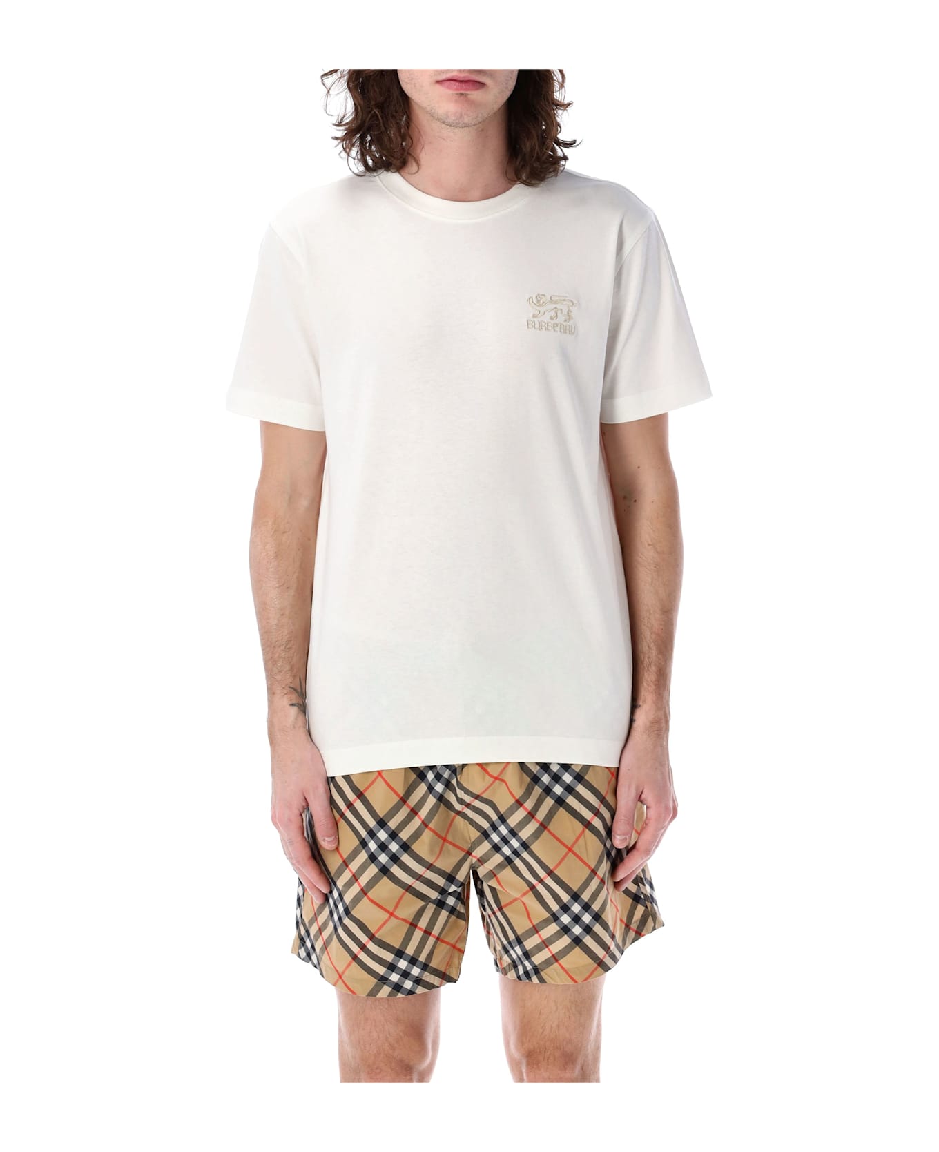 Embroidered Cotton T-shirt By Burberry London. Featuring: Ribbed Crew Neck Short Sleeves Embroidered Logo At Chest Regular Fit Model Is 1,90 M And Wears Size L