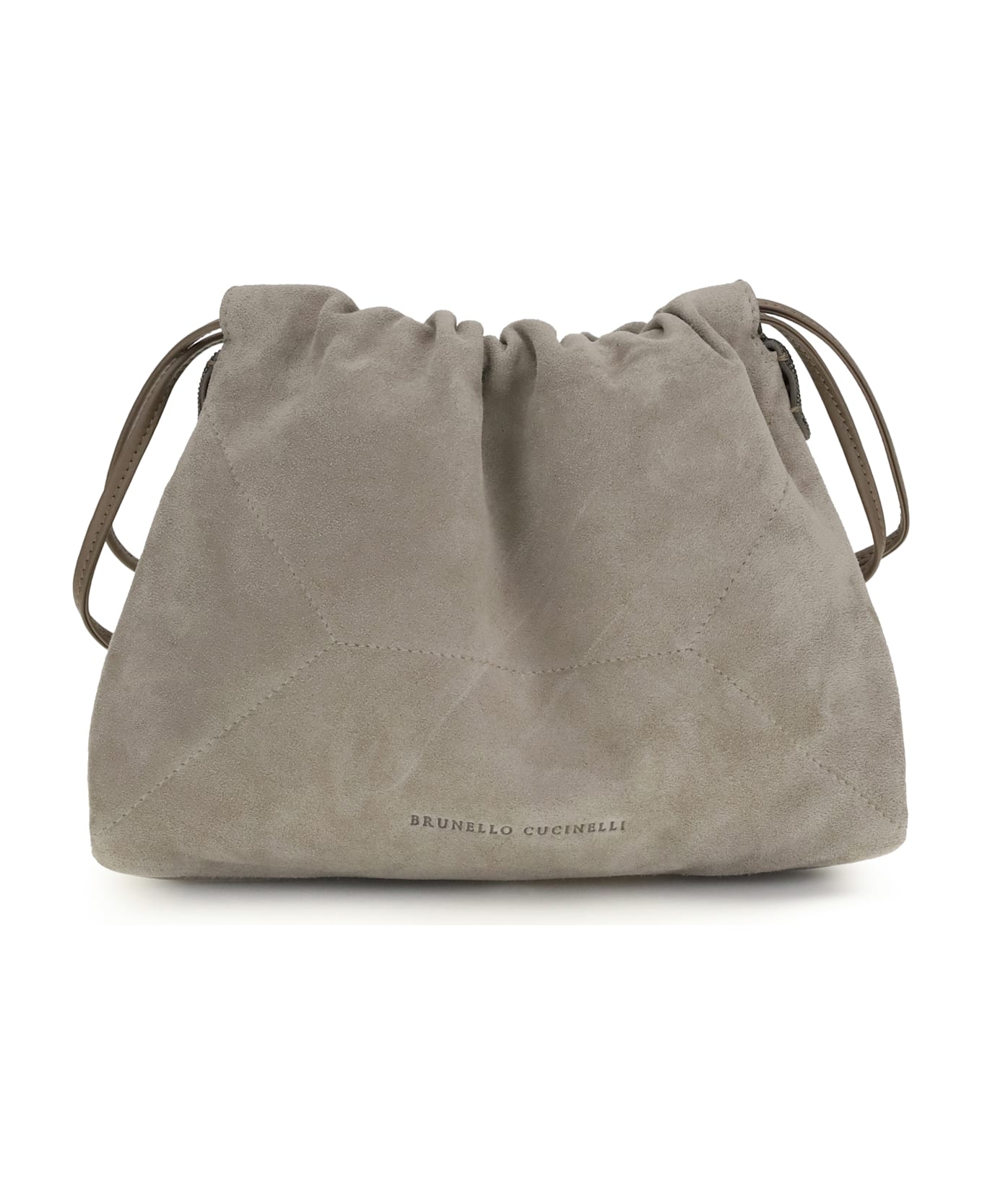 The suede pouch bag by brunello cucinelli is distinguished by a refined and essential style. featuring a drawstring closure and shoulder strap, it features a leather lining with a practical inside pocket. the design is embellished with a nickel-free monile decoration, which adds a bright and sophisticated touch. Composition: 100% % Calf Leather Bos Taurus
