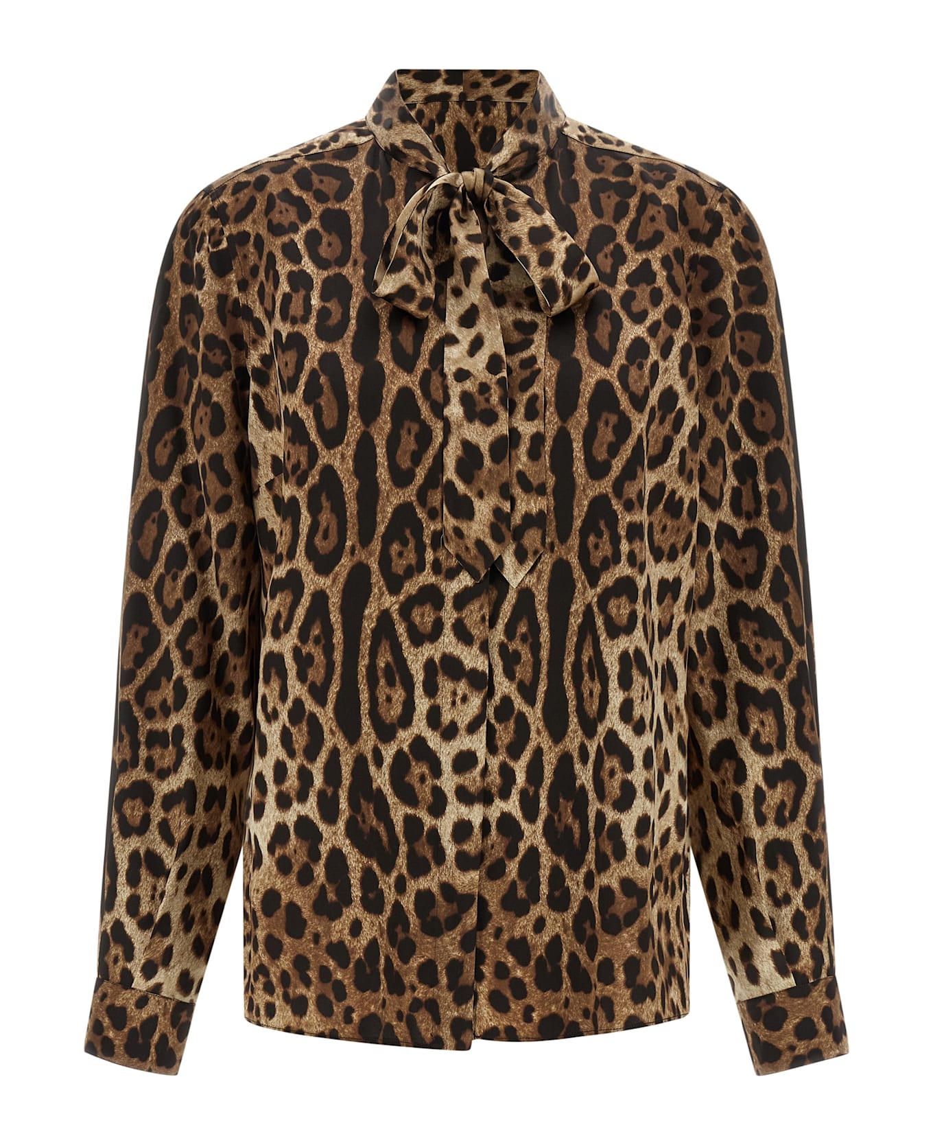 'Leopardo' print satin shirt, lavallière collar, concealed front button closure, long cuffed sleeves, rounded hem. The differences in print placement you might find on this product is a characteristic of Dolce&Gabbana's Handmade products. A peculiarity that makes each garment or accessory unique and exclusive.