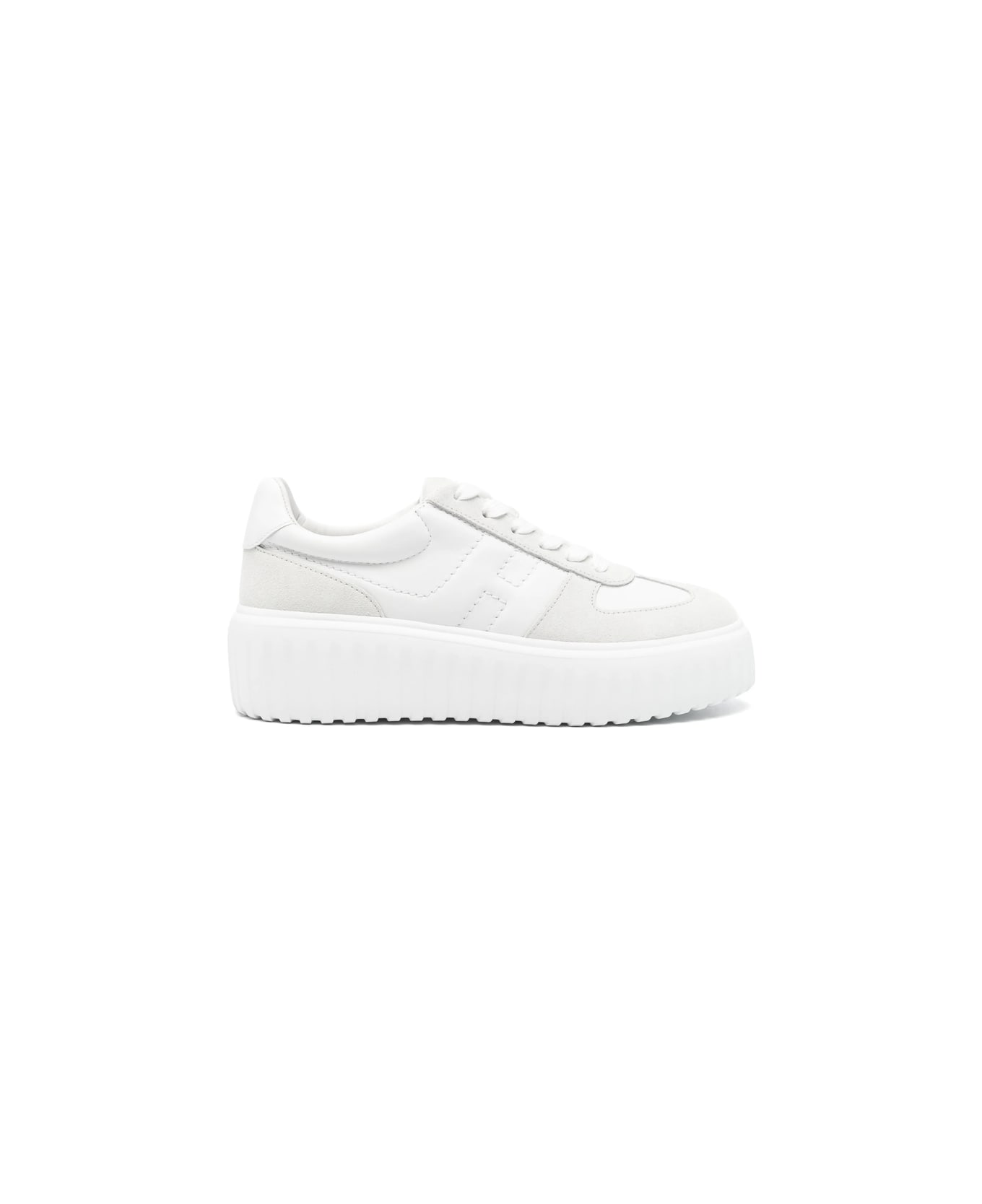 white panelled design platform sole ridged sole perforated detail front lace-up fastening