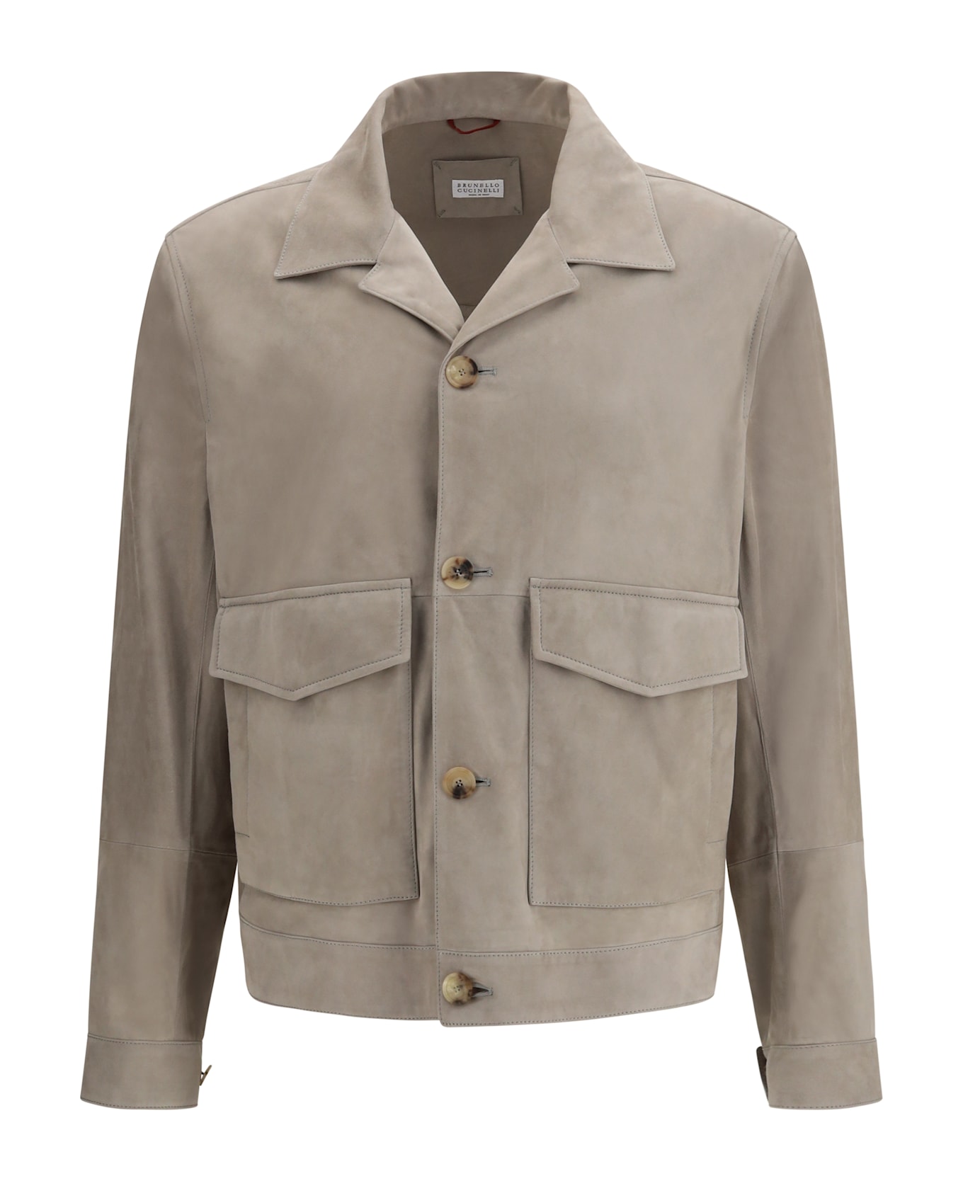 The suede jacket by brunello cucinelli is an elegant and sophisticated garment, perfect for those seeking a timeless style. with a classic lapel and front button closure, it offers a refined and versatile design. the two large patch pockets on the front add a practical and distinctive touch, making this jacket a must-have for a chic and contemporary look. a garment that combines luxury and functionality, ideal for a variety of occasions.