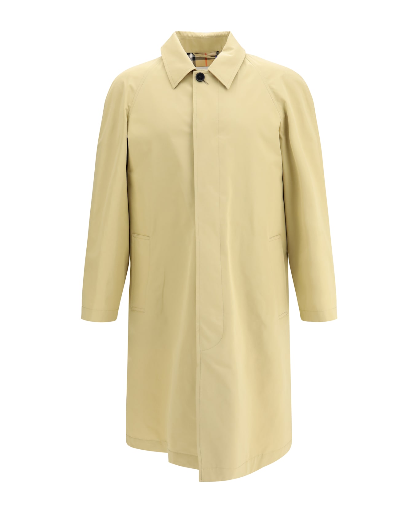The long cotton car coat by burberry revisits the maison s heritage codes with a relaxed cut, conceived to offer a roomier fit than the regular silhouette. crafted in italy from lightweight cotton twill with a soft hand, it features a concealed single-breasted button closure, a throat latch, and welt side pockets. buttoned tabs at the cuffs and a back vent refine its tailored construction, while the partial lining and underside of the collar enriched with the burberry check introduce a signature detail that anchors the piece in the brand s timeless aesthetic.
