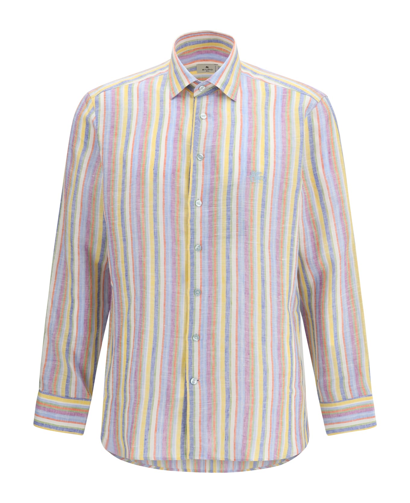 The roma logo shirt by etro delivers a contemporary graphic elegance through a distinctive striped design. featuring a classic pointed collar and a front closure with mother-of-pearl buttons, it presents a clean and refined structure. a subtle mini logo on one side adds a discreet signature touch, while the regular fit ensures a balanced and effortless silhouette. Composition: 100% % Linen