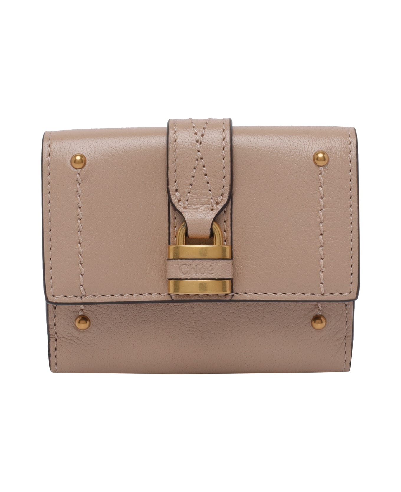 Chloe' earthy pink Mini Trifold Paddington wallet, clip closure, notes sections, 3 pockets, frontal logo lock Composition: 100% Buffalo Leather