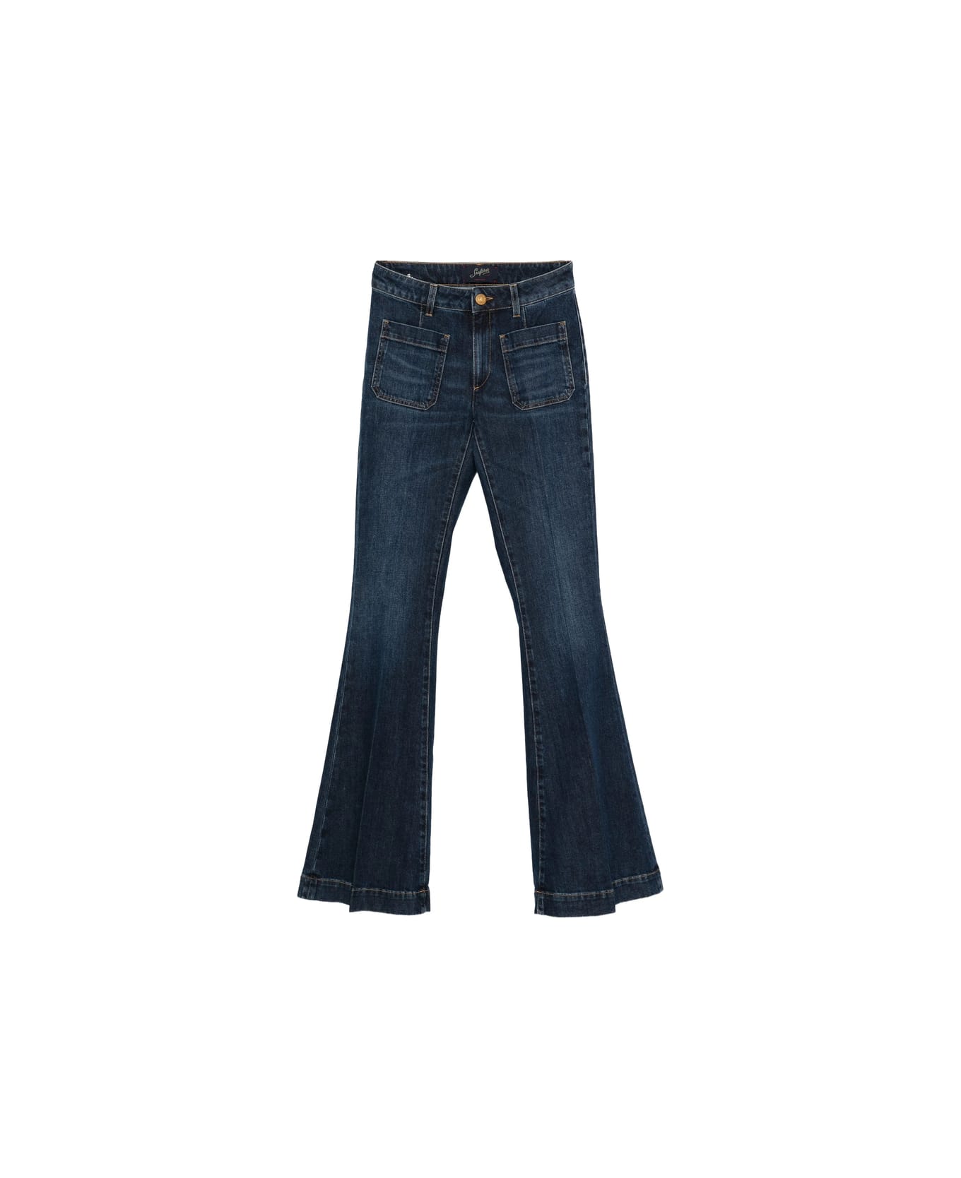 blue flared leg front flap pockets button fly high waist cotton-blend fabrication