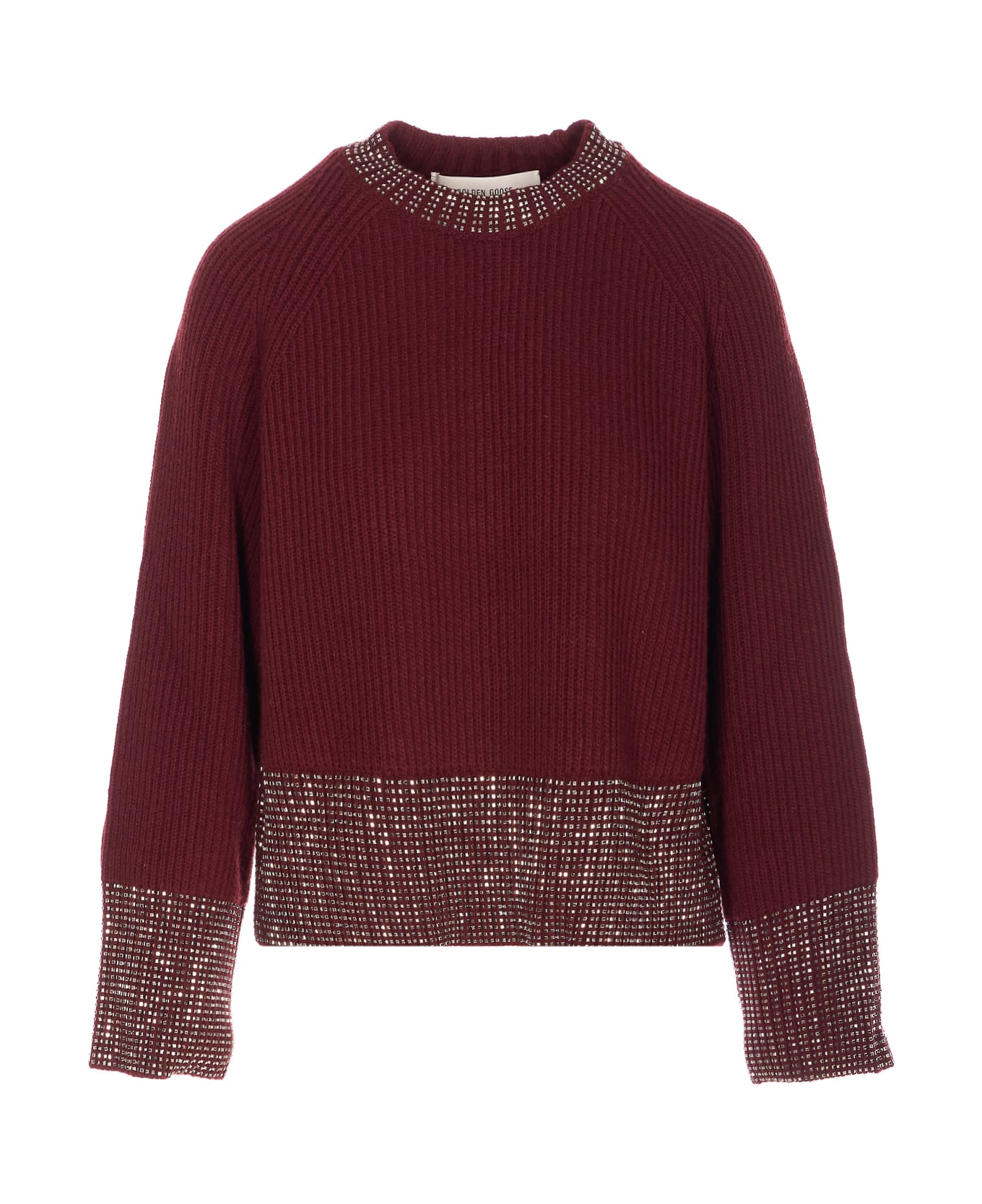 Golden Goose bordeaux Journey knit sweater, crewneck, long sleeves, application strass details