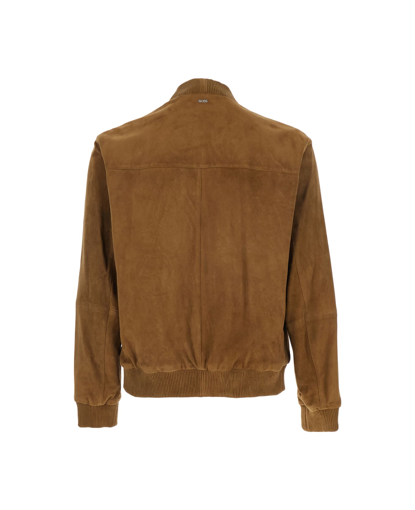 Jacket Brown Mandarin collar Long sleeves Front zip closure Two front welt pockets Ribbed trims Straight hem Suede Regular fit