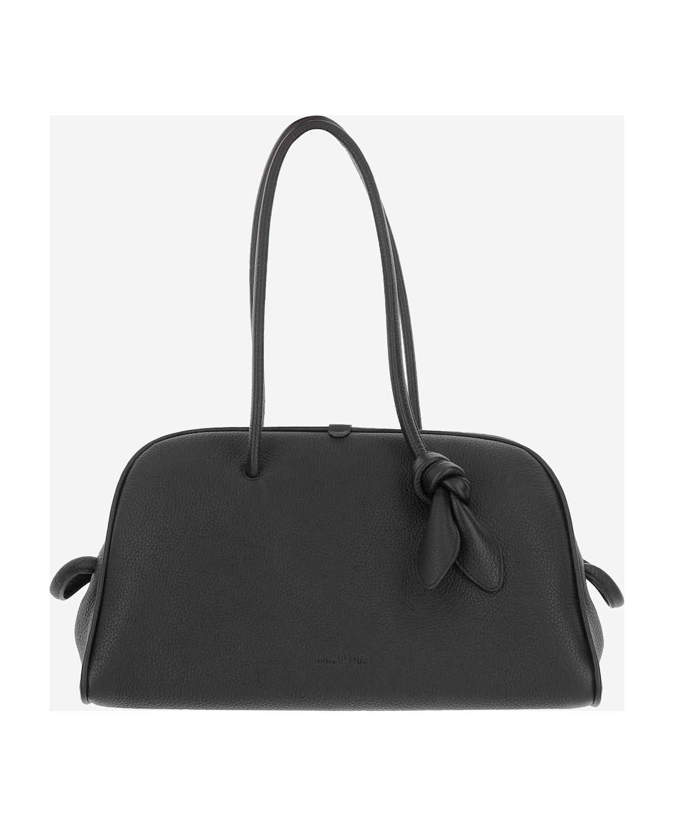 Bag made of calfskin leather Two top handles with bow detail Top zip closure Single compartment Black Made in Italy Composition: 100% calfskin leather