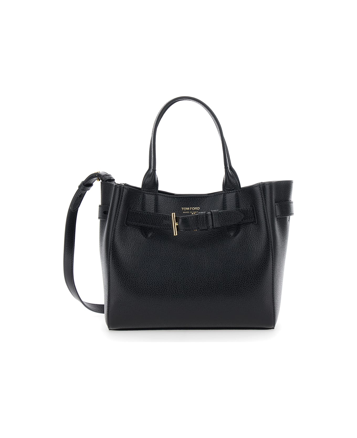 Black Handbag With Adjustable Strap And Logo Lettering On The Front In Hammered Leather Woman