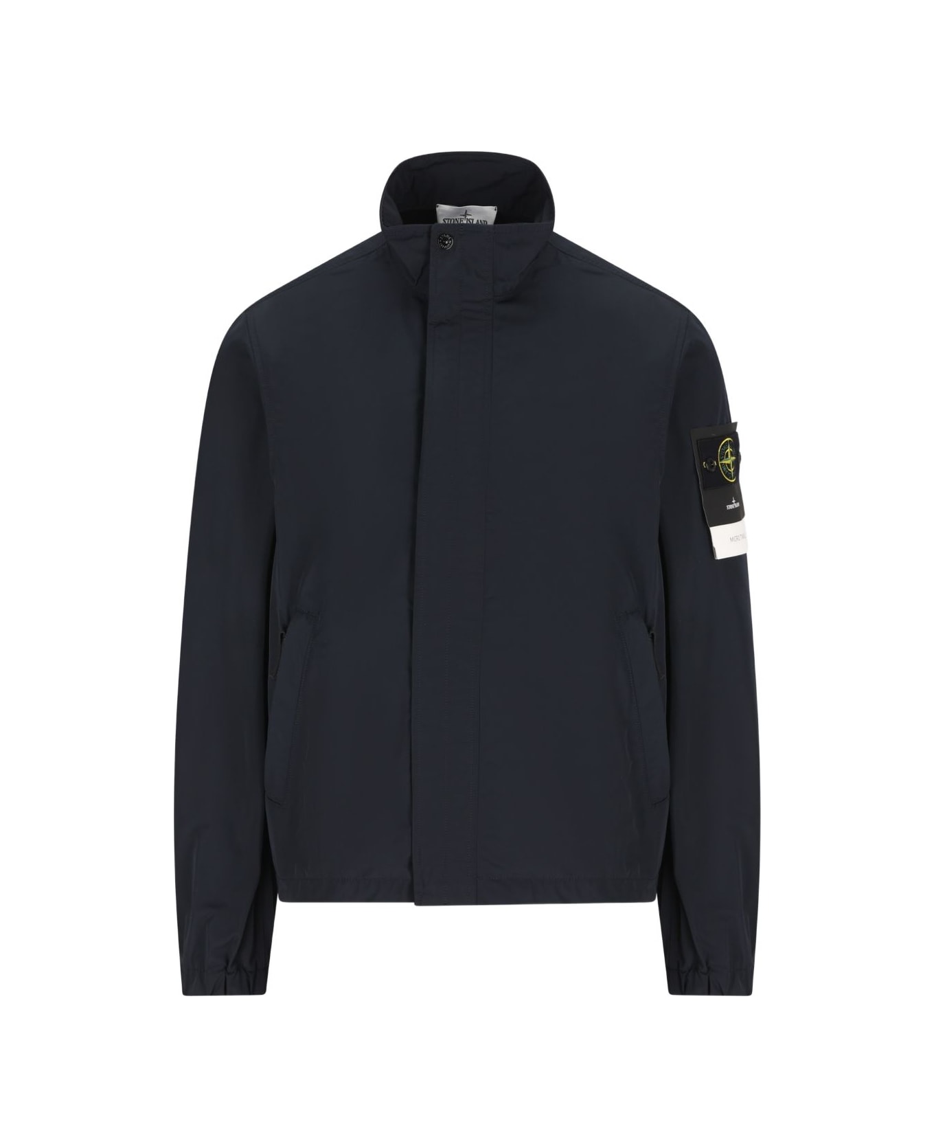 blue logo patch high neck buttoned placket zip pocket side pockets Composition: 100% Polyester