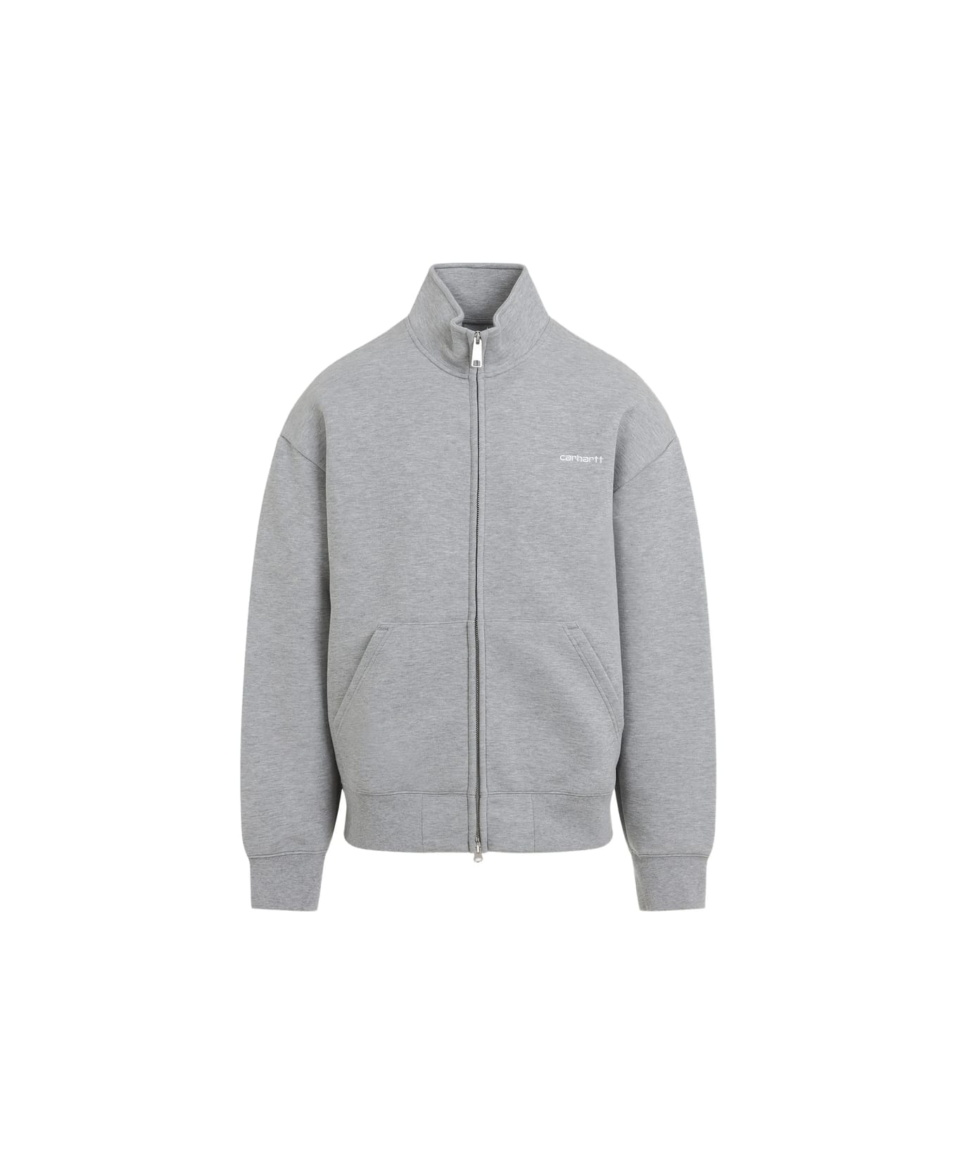 grey front zip fastening high neck front pouch pockets logo embroidery