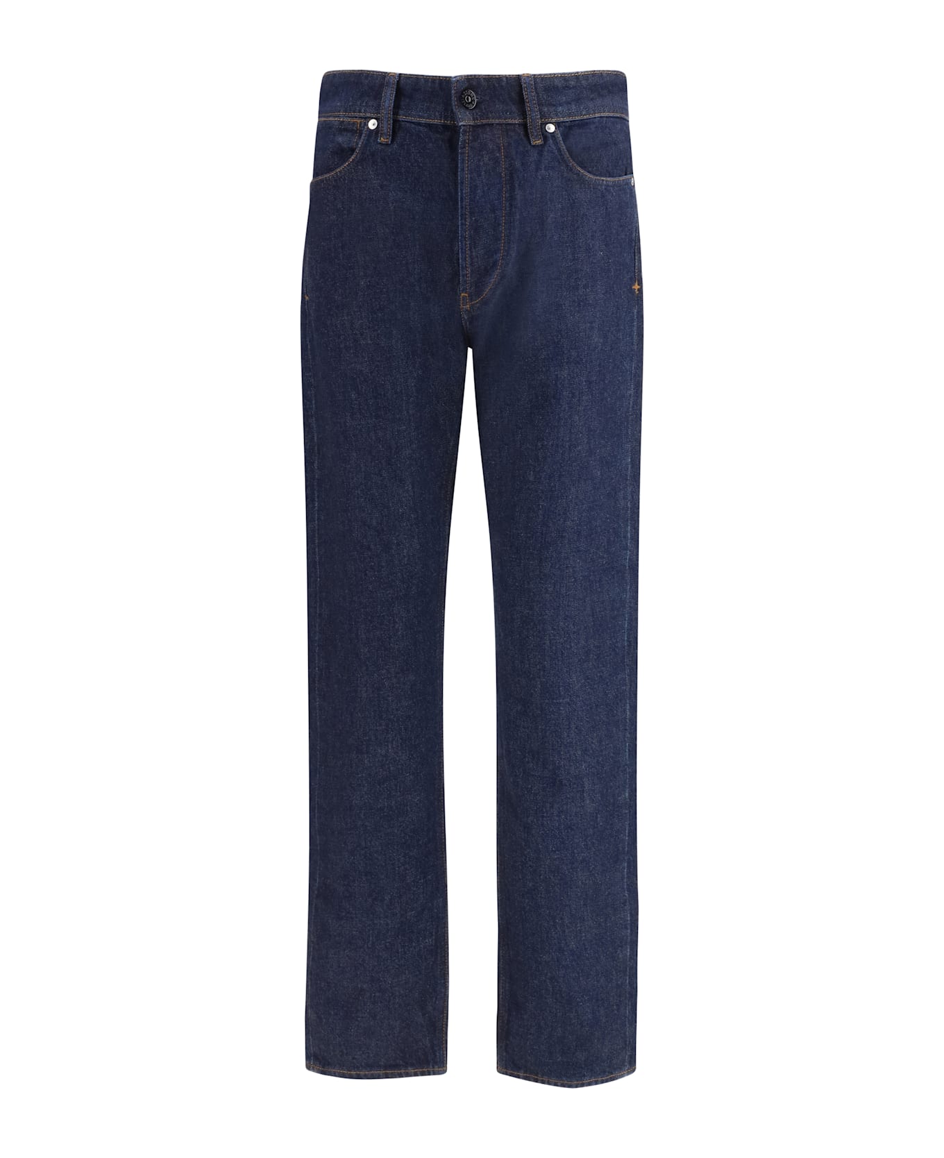 The regular-fit denim jeans by stone island deliver a clean and functional aesthetic true to the brand s identity. featuring a classic five-pocket construction, they are designed with a front button and zip closure and belt loops at the waist for everyday practicality. contrast stitching enhances the structure of the piece, while a straight hem and straight leg create a balanced and versatile silhouette. a logo label applied at the back of the waist completes the design with a subtle and recognizable signature. Composition: 100% % Cotton