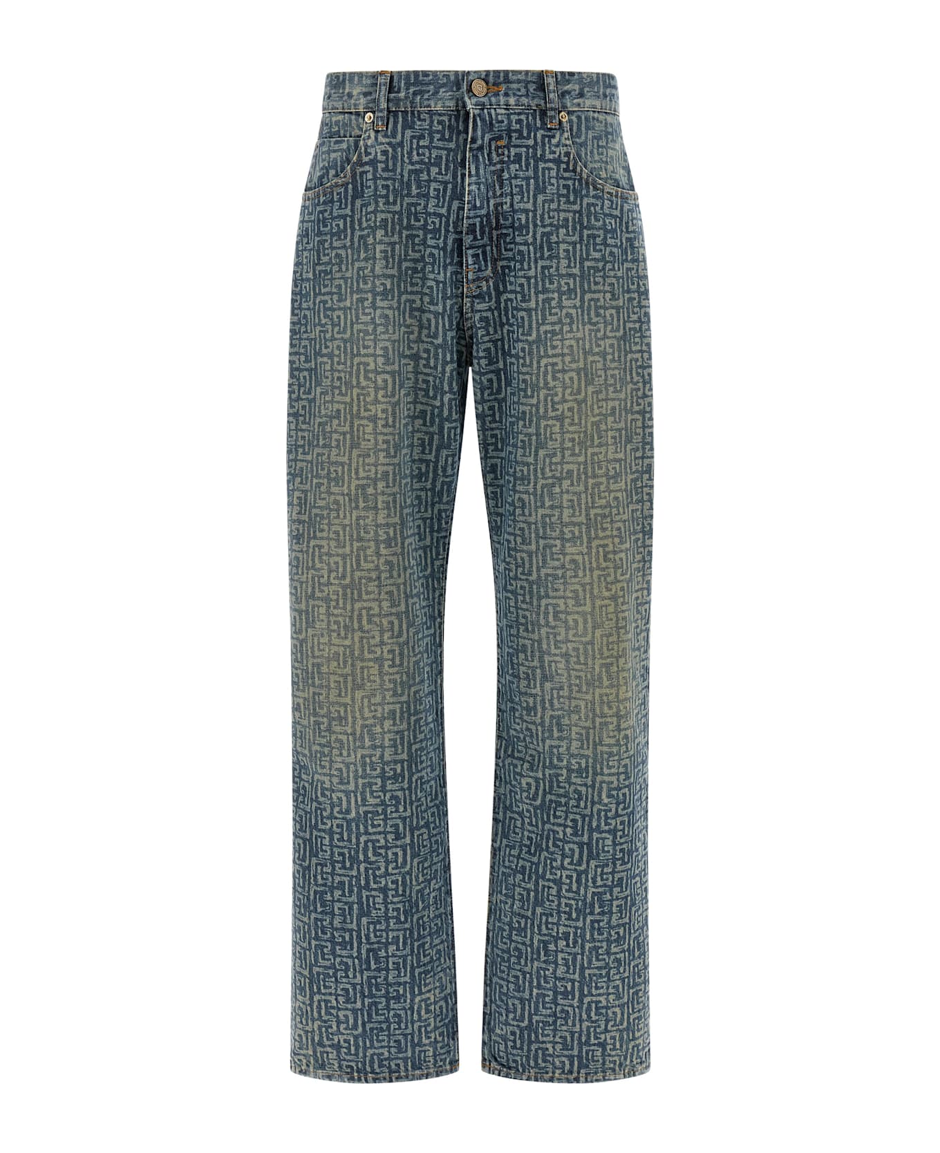 Stonewashed cotton denim jeans with laser Monogram print, contrast stitching, wide and straight leg, front zip and button closure, five pockets, logo tag and embroidered on the back. Composition: 100% cotton