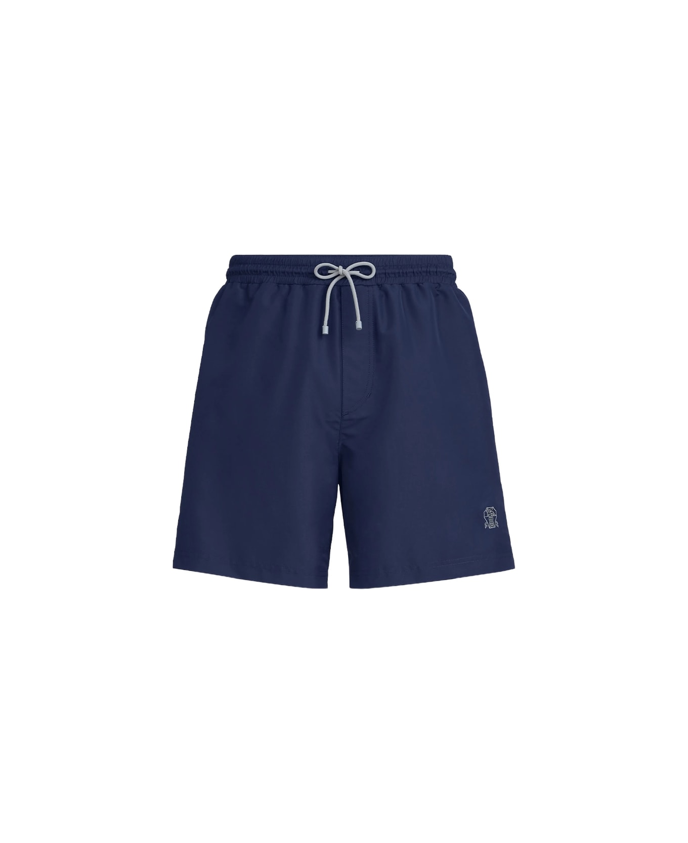 navy blue drawstring-fastening back patch-pocket logo-detail Be mindful to try on swimwear over your own garments.