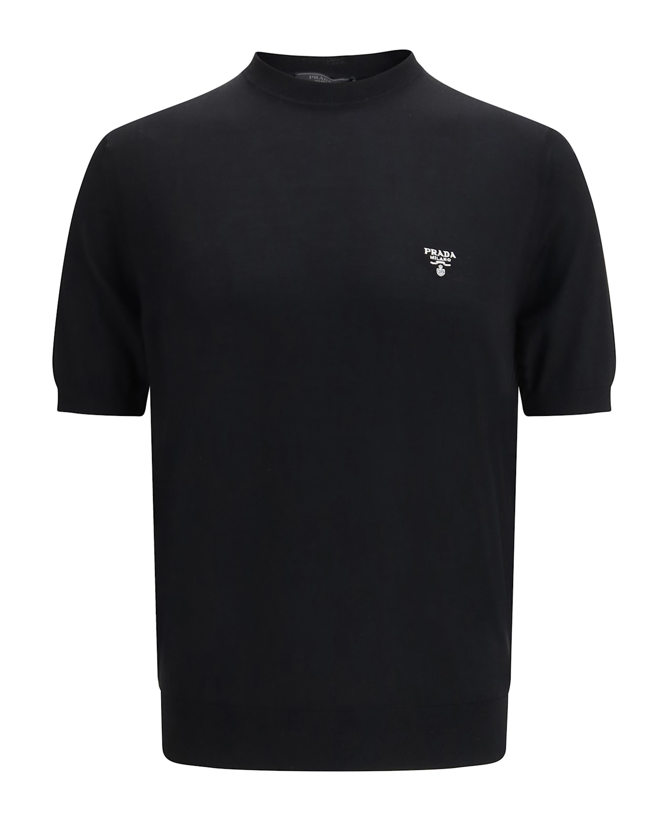 The virgin wool t-shirt by prada elevates a wardrobe staple through the refined softness of pure wool knitwear. the embroidered logo at the chest enhances its clean silhouette, while the ribbed crewneck, cuffs, and hem reinforce its structured finish. a piece that blends comfort and sophistication, embodying the brand s understated elegance. Composition: 100% % Fleece Wool