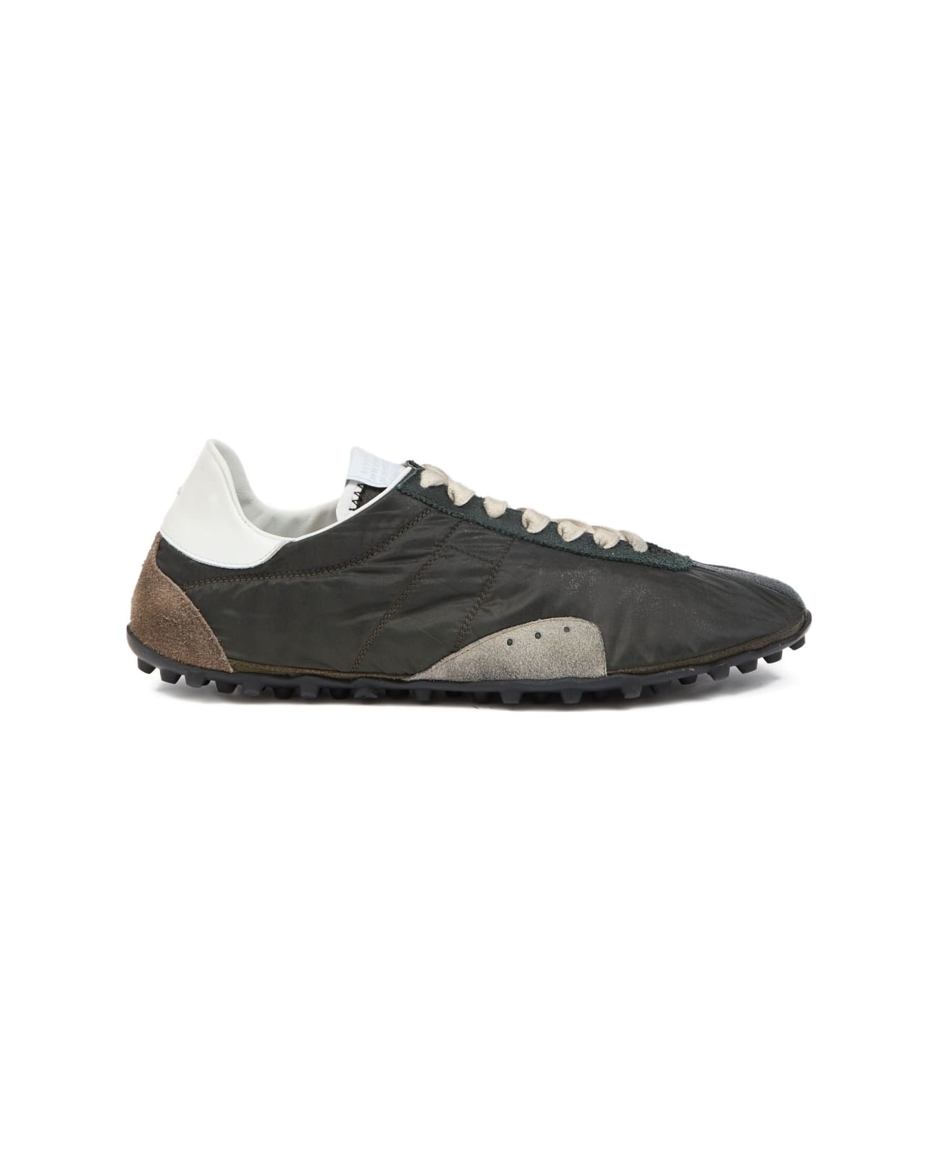 dark green lace-up fastening panelled design rubber sole pull tab