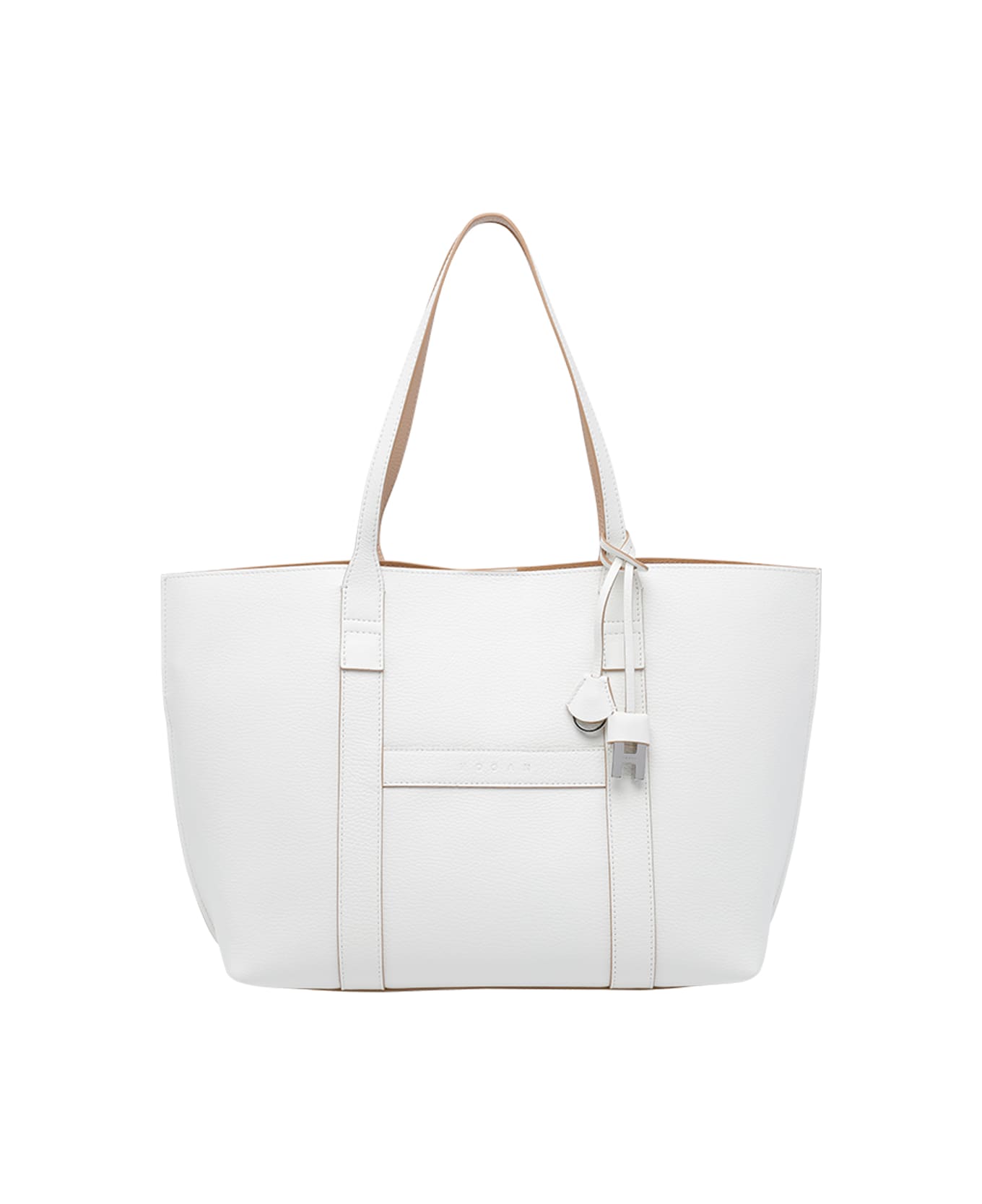 Hogan white Medium Hogan Script shopping bag, magnetic closure, central extraible section, H charm