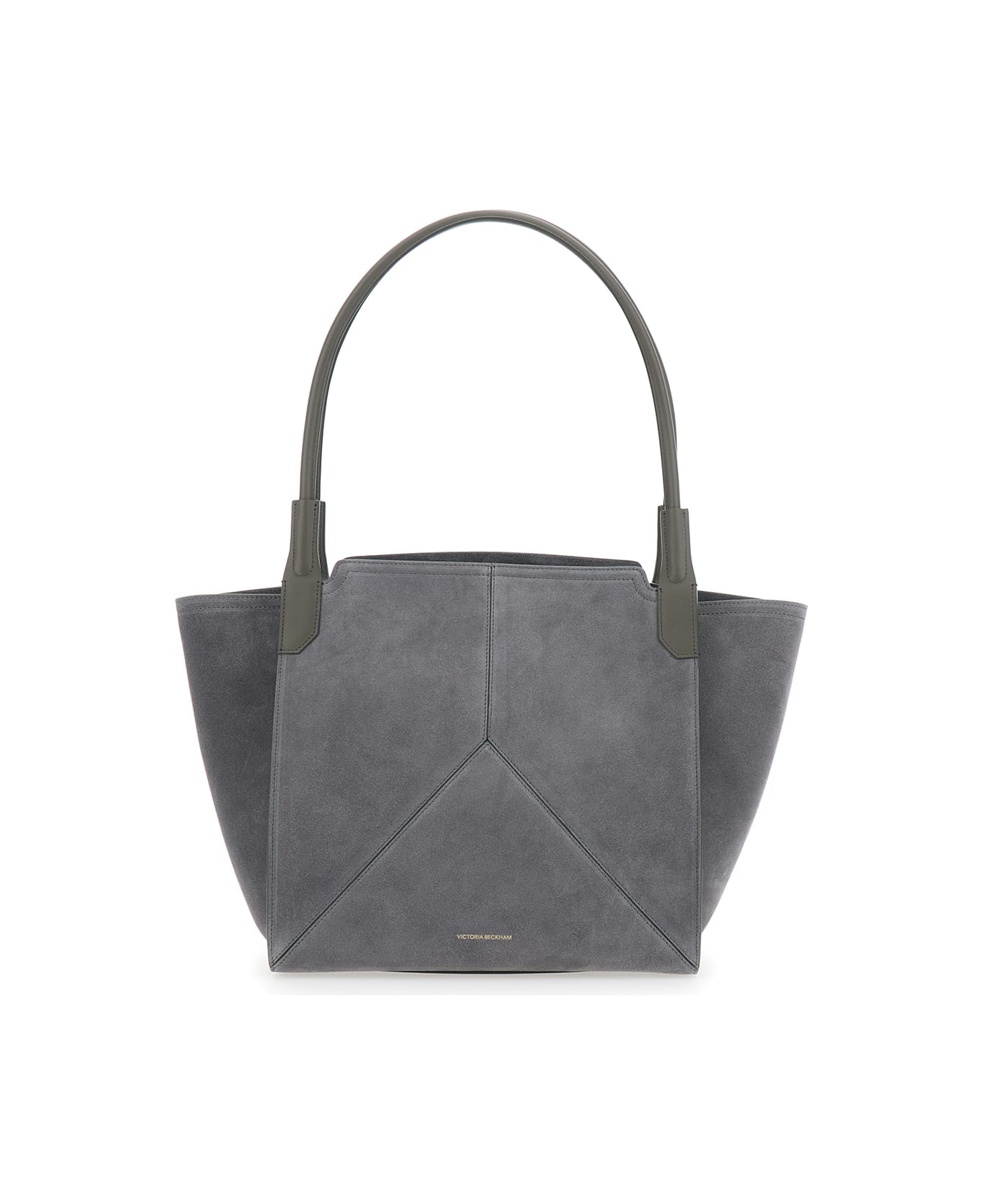 victoria Small Grey Tote Bag With Embossed Logo Lettering On The Front In Suede Woman