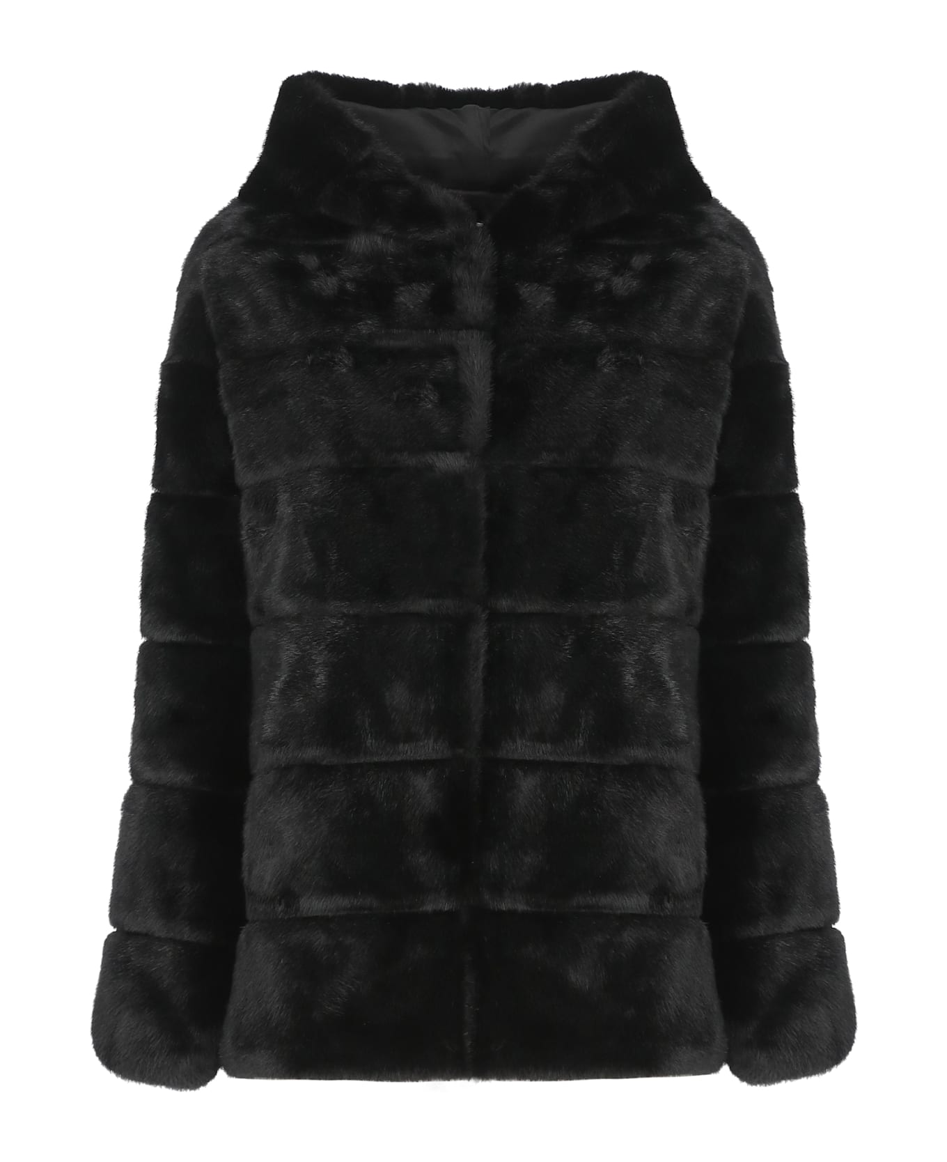 - Betta Corradi woman's black synthetic fur jacket - Hood - Long sleeves - Two front slit pockets - Front hooks fastening