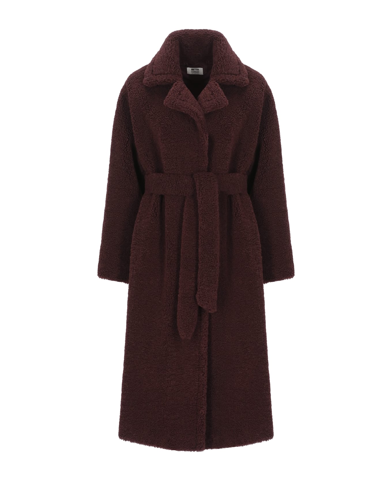 - Betta Corradi woman's bordeaux synthetic teddy coat - Lapel collar - Long sleeves - Two side slit pockets - Belt loops - Matching belt included