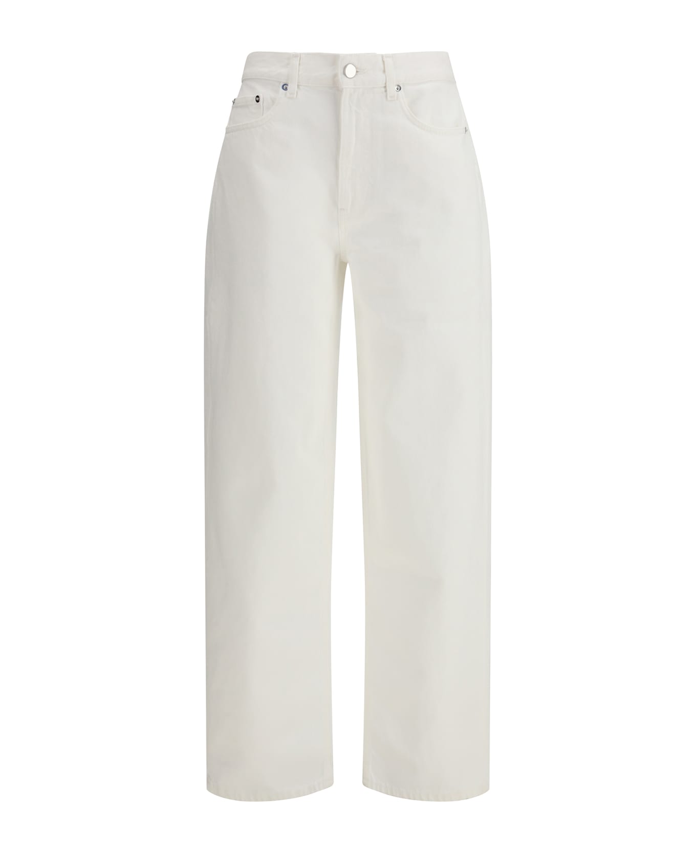 The samur lds jeans by loulou de saison are crafted from non-stretch organic cotton denim, defined by a relaxed straight-leg silhouette with a naturally effortless attitude. the fabric shows subtle fading throughout, enhancing the lived-in character of the design. finished with classic five-pocket styling, belt loops and a zip fly, they are completed by a discreet logo patch at the back waistband, offering a refined take on an everyday essential.