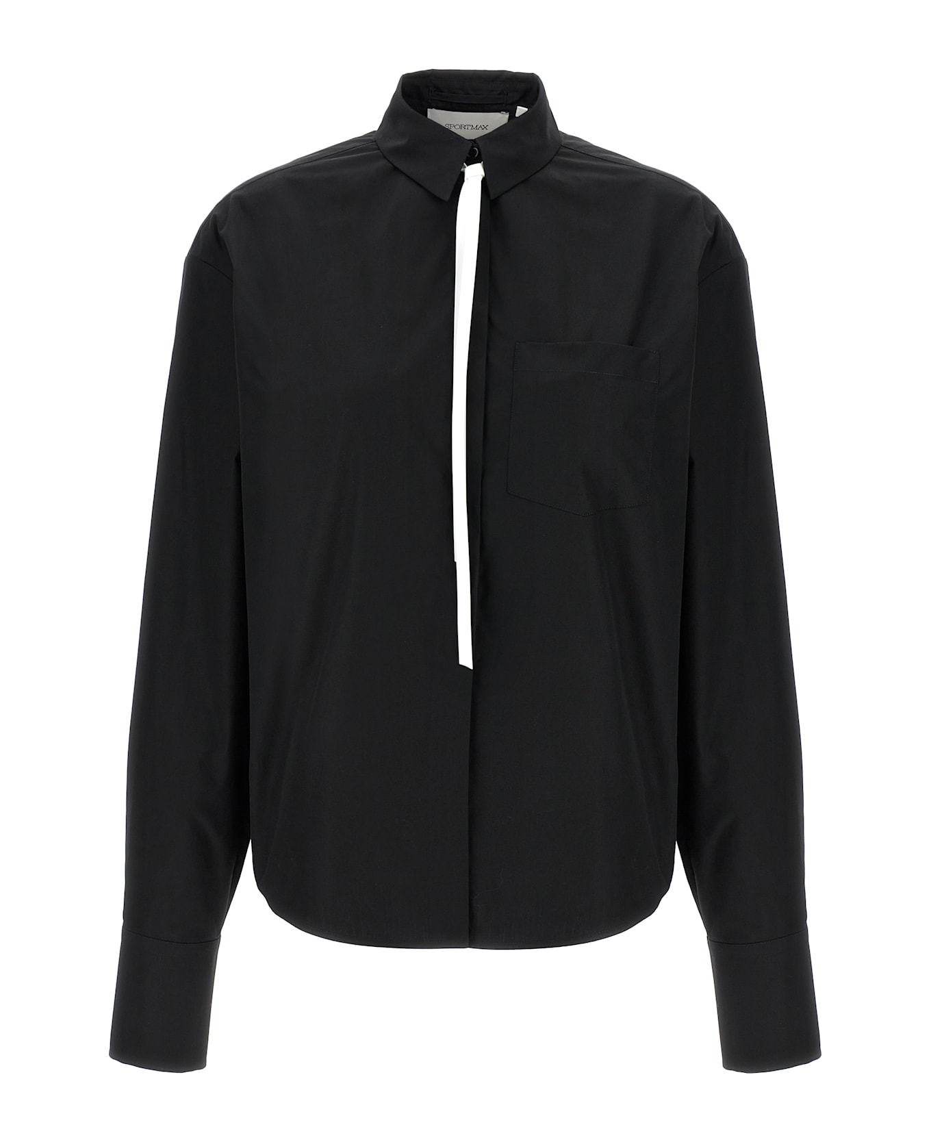 'Gesso' cotton poplin shirt with button closure, front chest pocket, long cuffed sleeves, contrast tie.