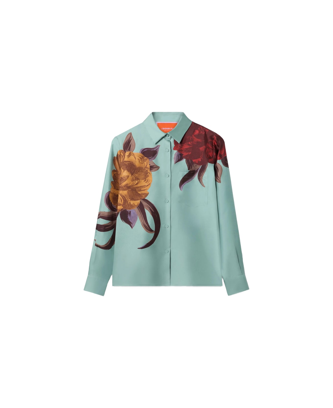 blue floral print button fastening chest pocket long sleeves buttoned cuffs