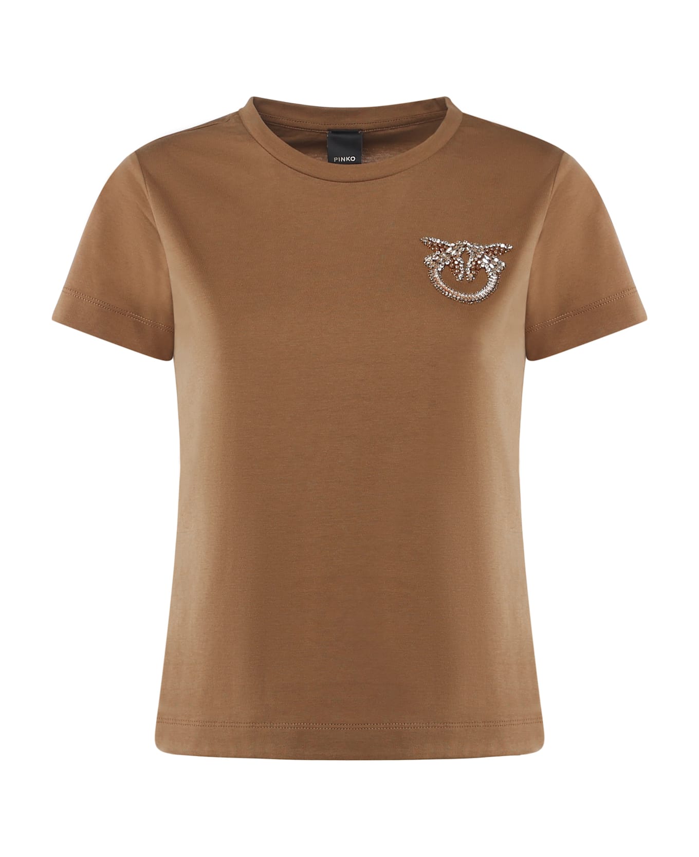 T-shirt With Crystal Love Birds Logo Embroidery