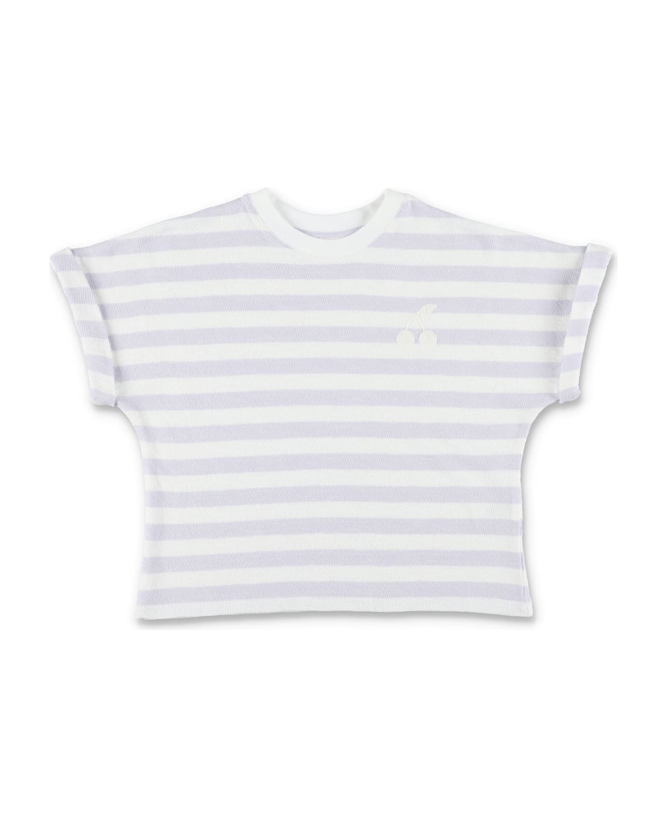 The Bonpoint Farah T-shirt Revisits A Classic Striped Motif With A Relaxed Crew-neck Silhouette And Wide Cut For Effortless Comfort. Crafted In Soft Cotton, It Features Rolled Cuffs And A Delicate Crocheted Cherry Appliqué On The Chest, Adding A Charming Signature Accent To An Everyday Essential. Cotton Knit