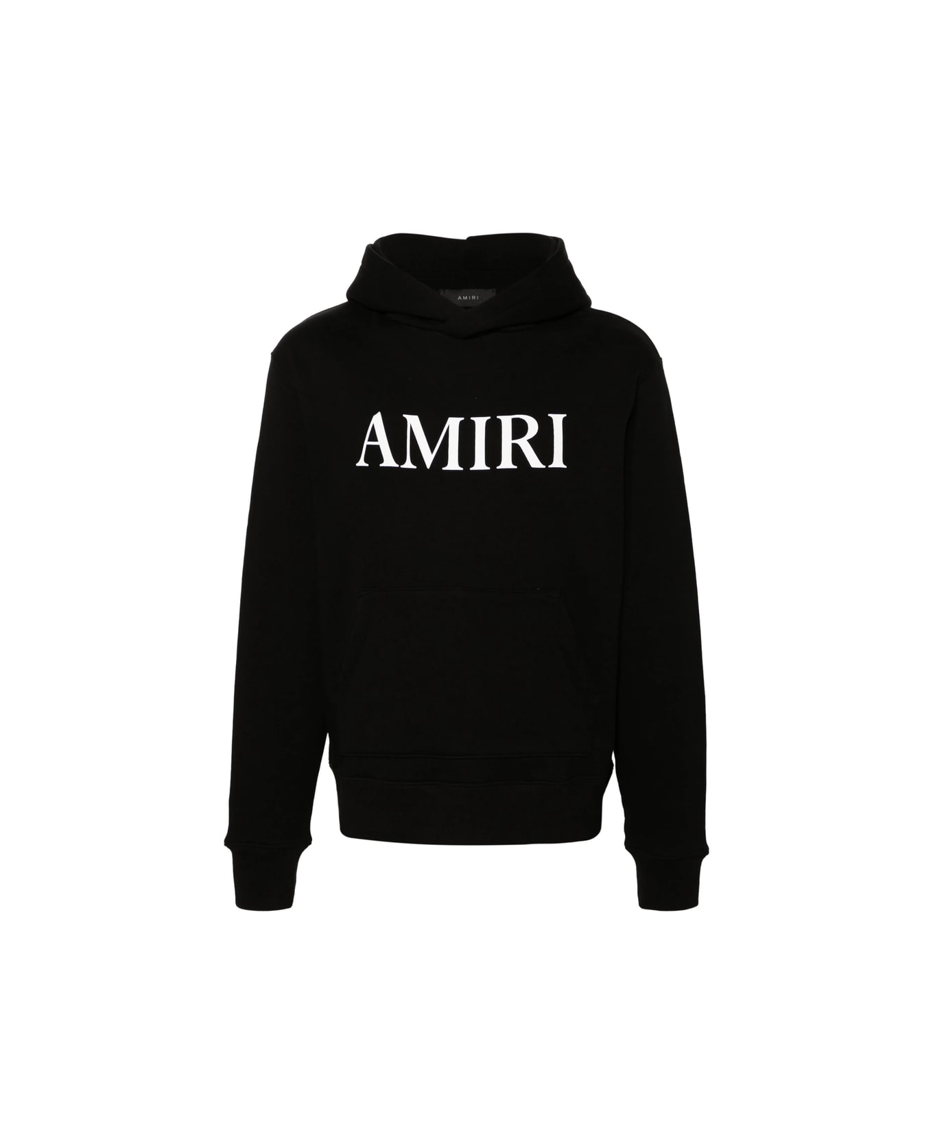 black/white cotton jersey texture logo lettering classic hood drop shoulder long sleeves ribbed cuffs front pouch pocket French terry lining ribbed hem