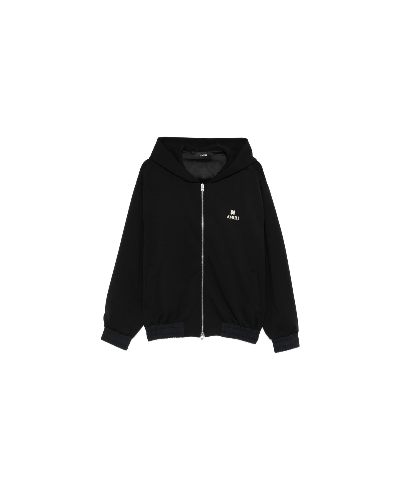 black logo detail zip closure hooded neckline long sleeves elasticated hem