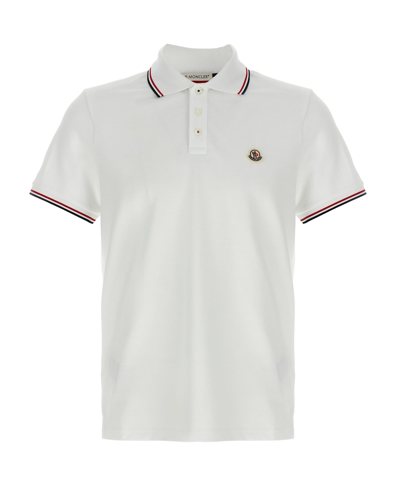 Cotton piquet polo shirt with tricolor details, front felt logo patch, collar and buttons, short cuffed sleeves, side slits.