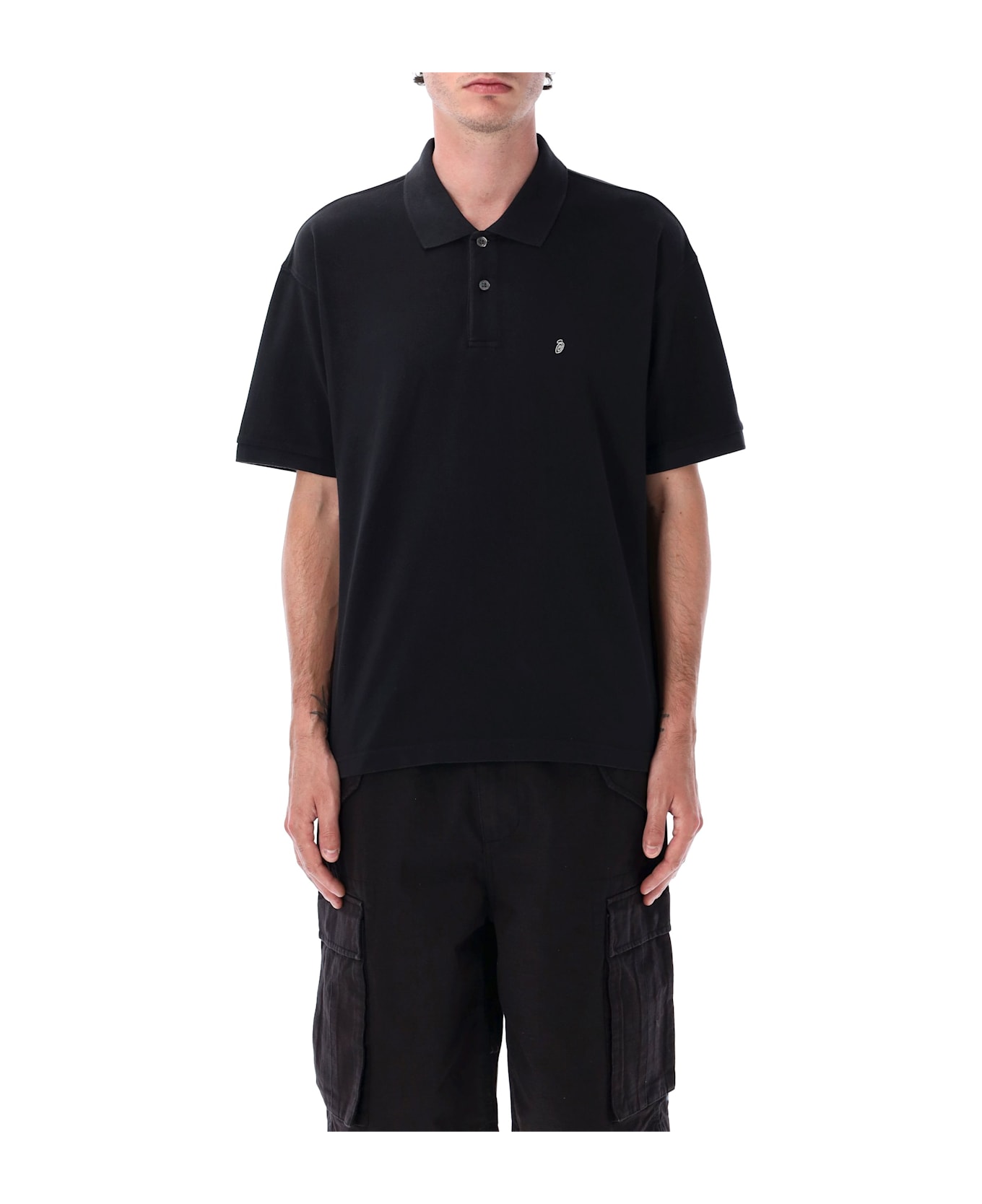 Classic Pique Cotton Polo Shirt By Stüssy. Featuring: Classic Ribbed Polo Shirt Collar Two Button Placket Short Sleeves Embroidered Logo At Chest Loose Fit Model Is 1,90 M And Wears Size L