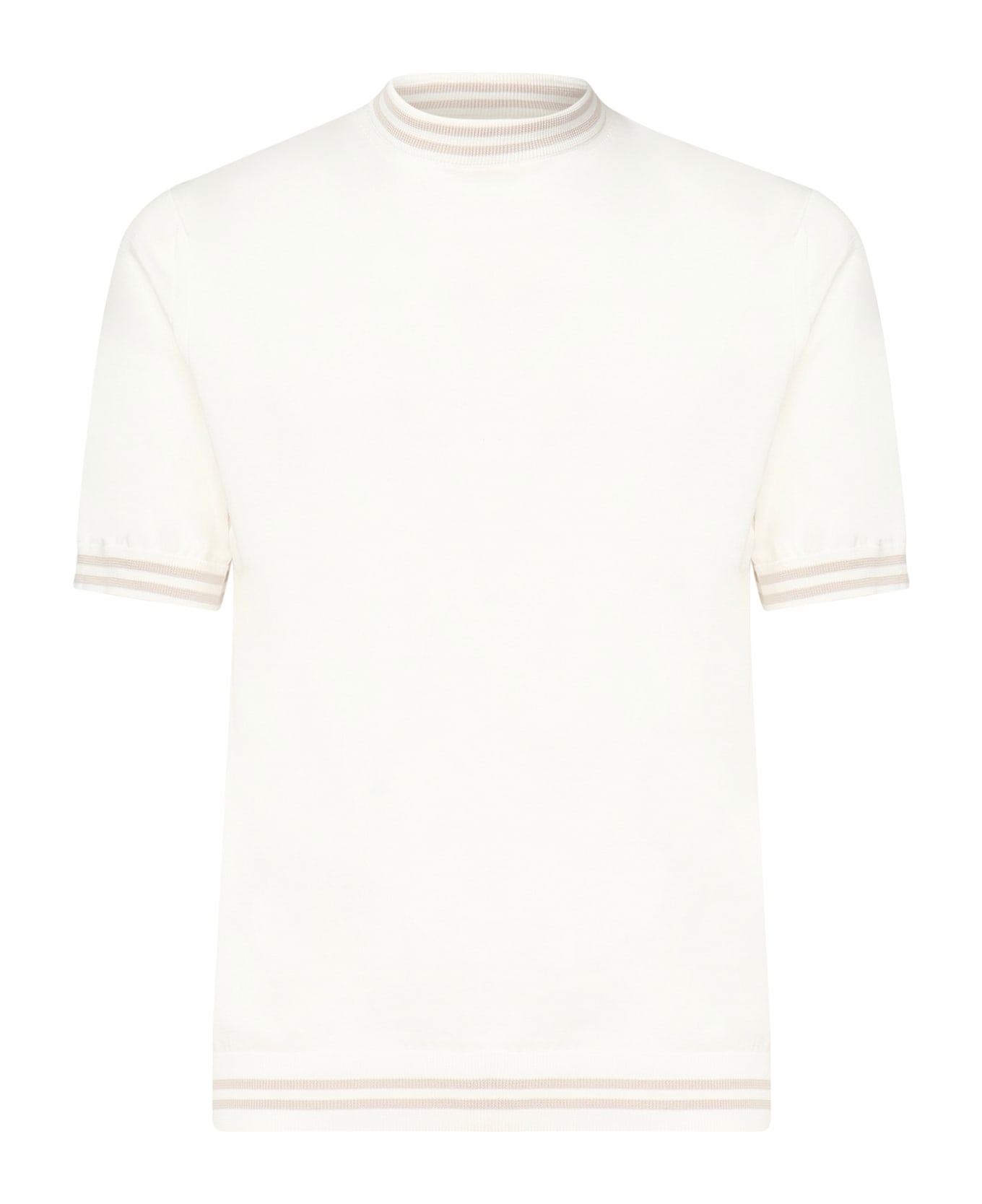 - Made of cotton - Short sleeves - Striped trim - Regular fit - Made in Italy - Size shown in the photo is S - Color: White, Beige