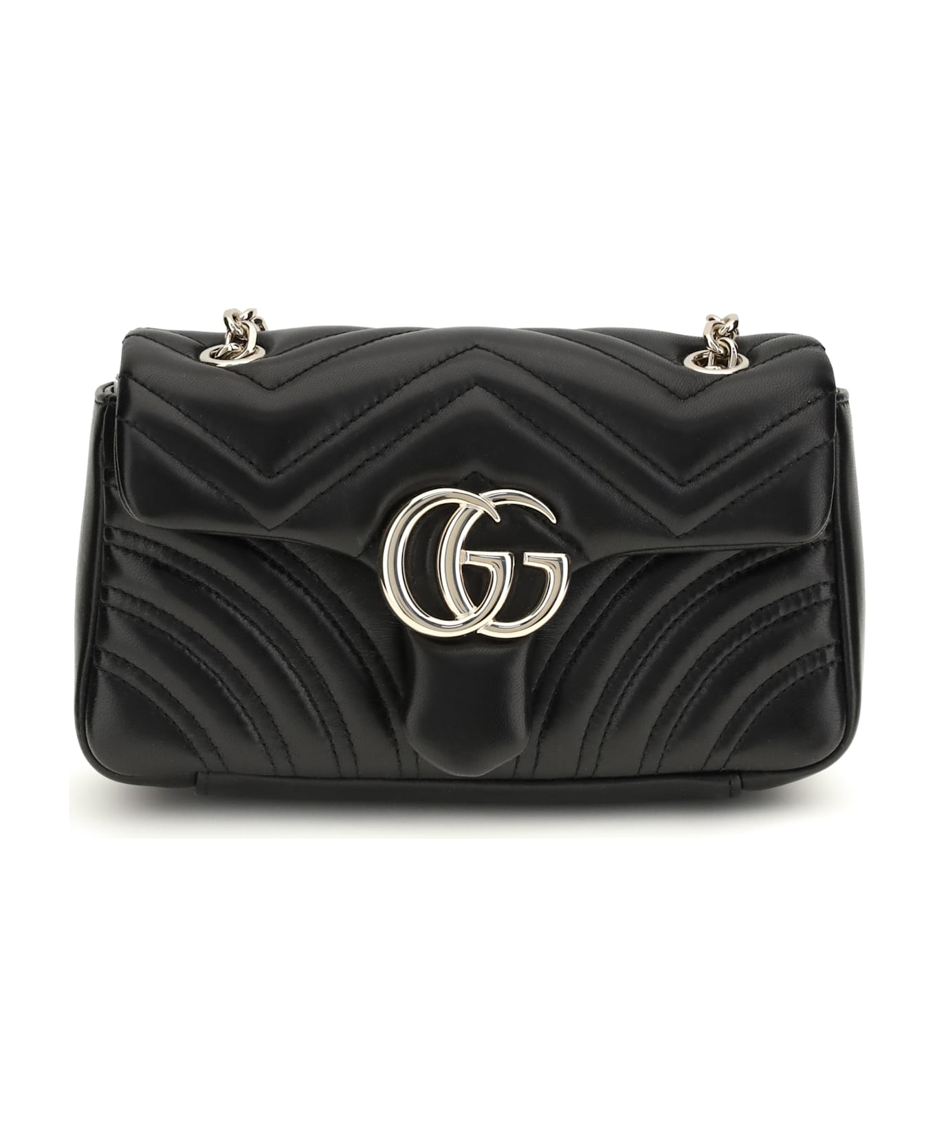 The gg marmont small shoulder bag by gucci is a classic reinterpreted with contemporary elegance. made of black matelassé lambskin leather in a chevron pattern, it is enhanced by light gold hardware details and gucci red ancora viscose lining. the spring-loaded flap protects items, while the interior features a zippered pocket and the exterior an open pocket. the sliding chain strap allows it to be carried comfortably on the shoulder with a 22-cm drop, making it versatile and perfect for any occasion.