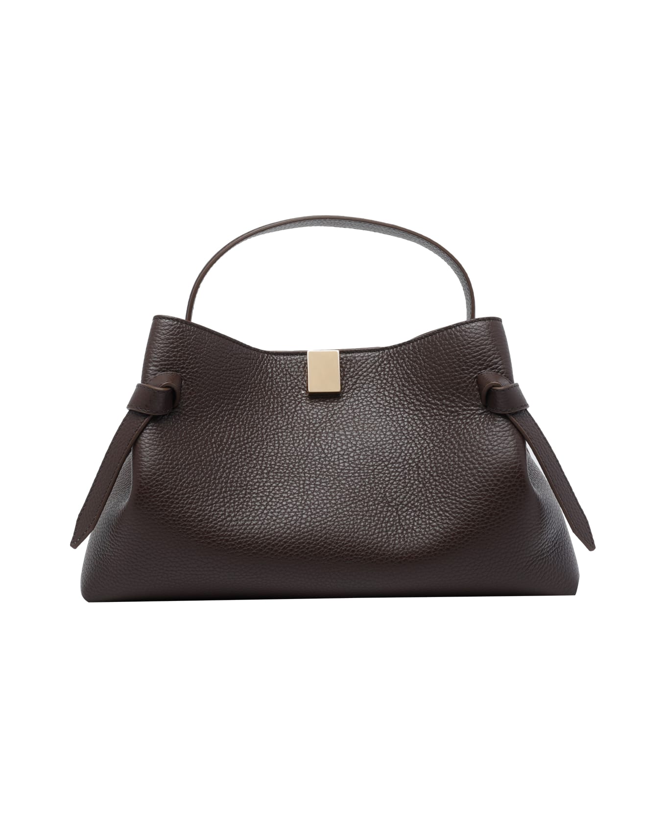 Yuzefi brown Gyoza handbag, magnetic closure, 1 handle, adaptable and removable strap, leather model