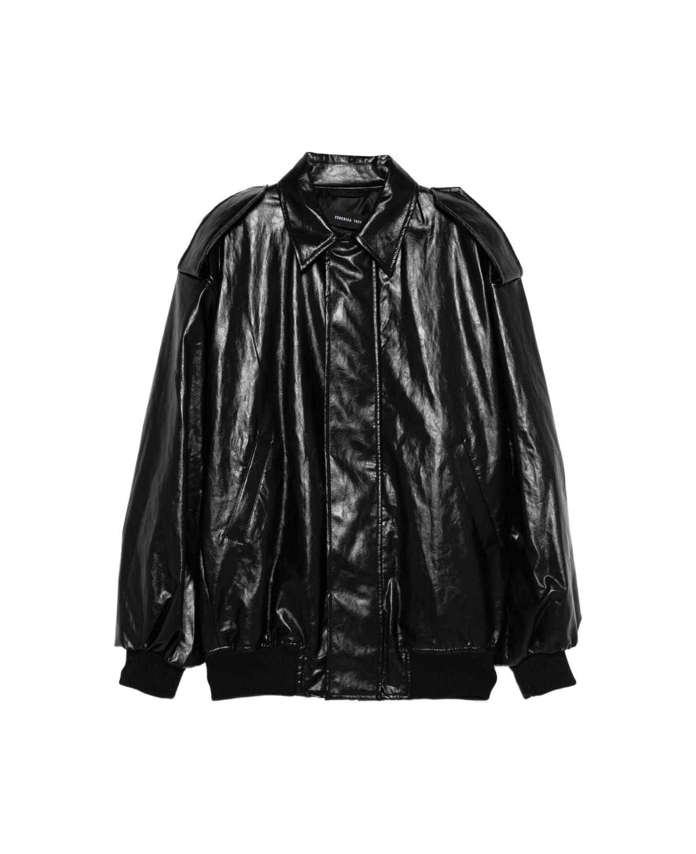 Federica Tosi Leather Jacket with Classic Collar and Dropped Shoulders