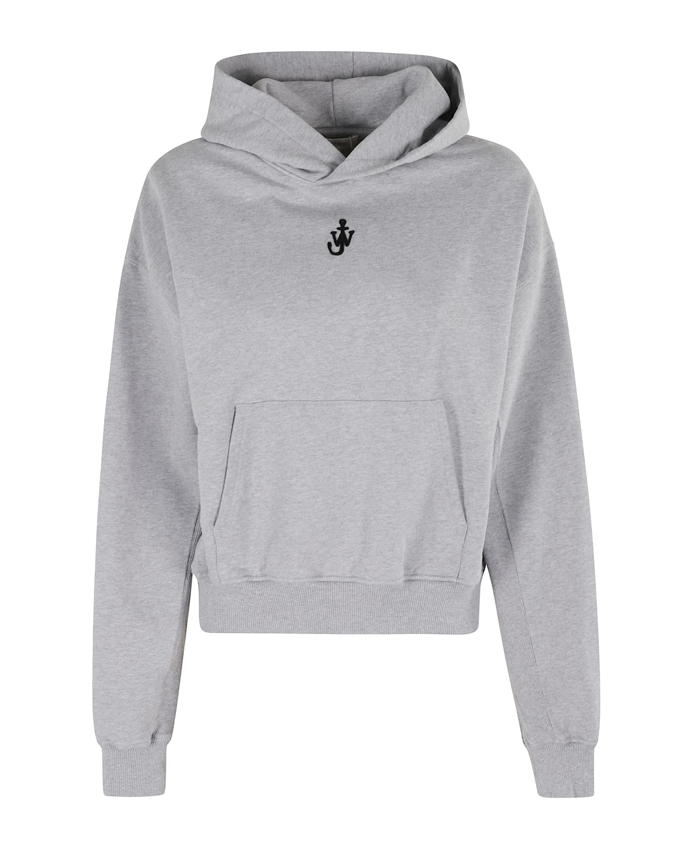 Sweatshirt. Jw Anderson - Gray color - Anchor embroidery cropped pattern - Hood - Long sleeves - Single front pocket - Black central logo.