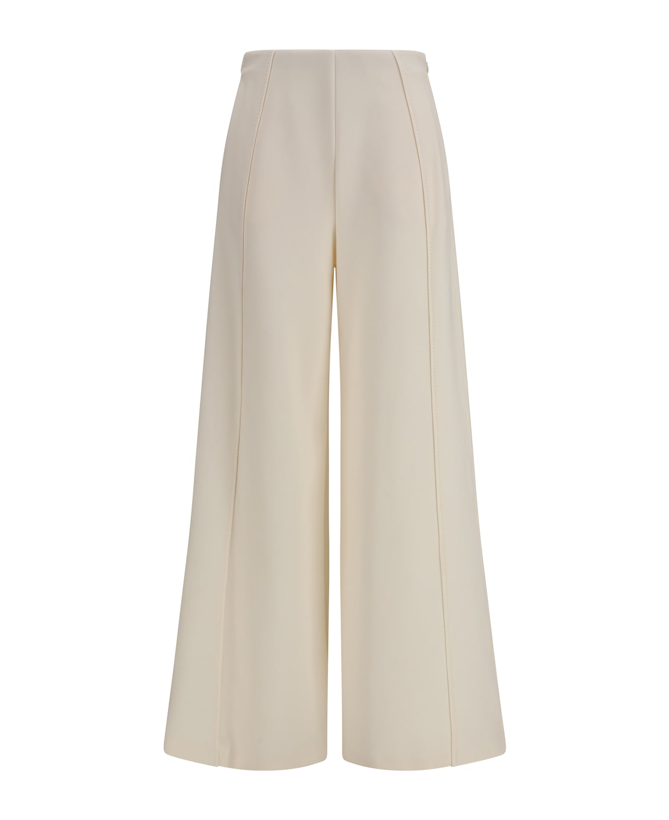 The mxpnigella scuba jersey pants by max mara pure combine comfort and style with a modern, functional design. the wide, flared leg offers a fluid, sophisticated silhouette, while the invisible zip closure at the side ensures a clean, minimalist look. the inset pockets at the hips add practicality, while the internal elasticated waistband with visible logo ensures a comfortable, customizable fit.