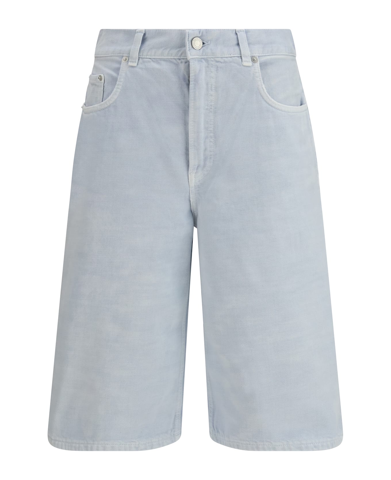 The new becky denim shorts di haikure are a contemporary and structured garment. with a mid-rise waist and a-line cut, these bermuda shorts create a modern and refined silhouette, perfect for the warm season. the five-pocket design, button and zipper closure, and belt loops add functionality and practicality to the design. a versatile and chic garment, ideal for those looking for a casual look with a touch of elegance.