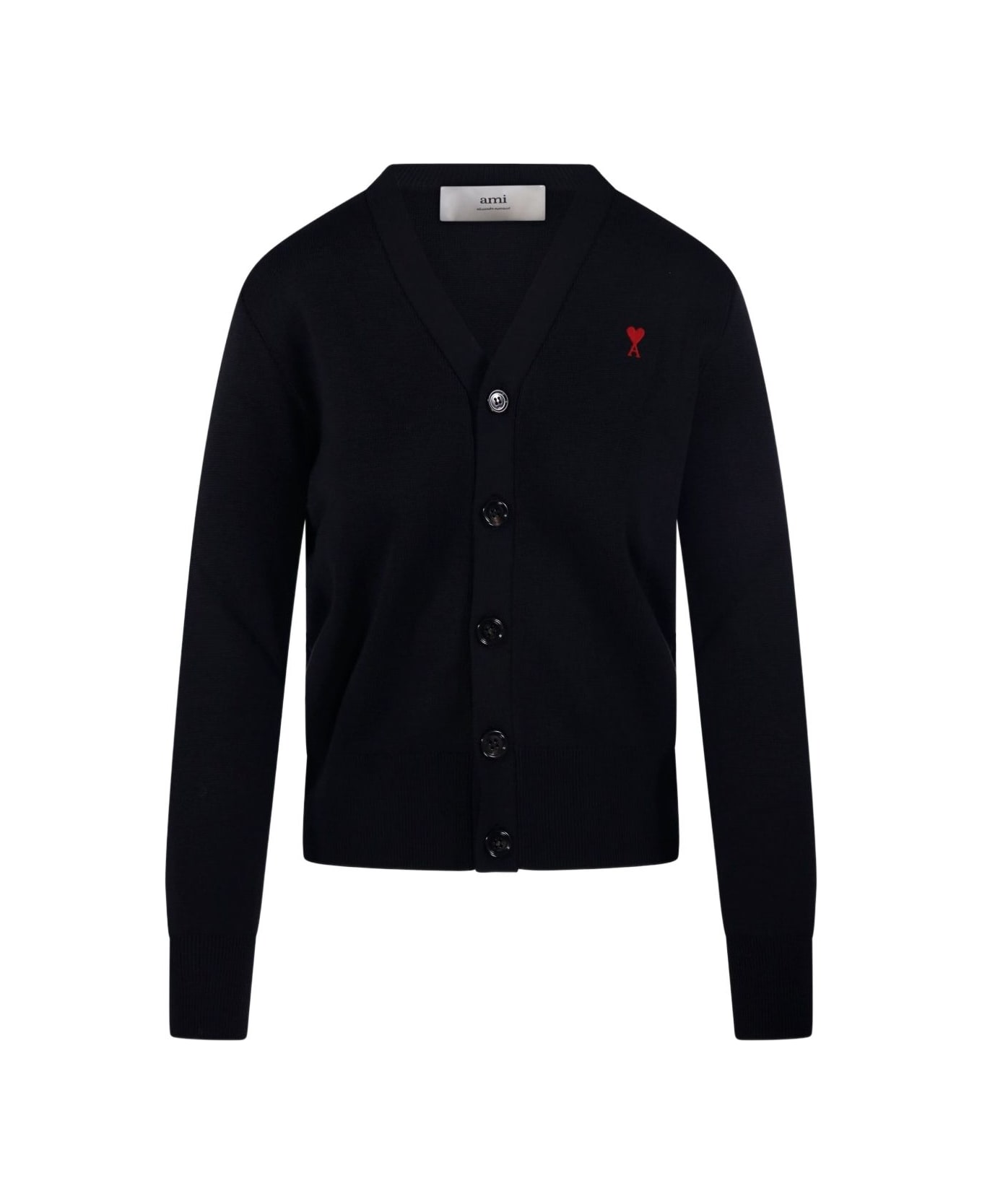 black V-neck button fastening ribbed knit long sleeves Ami De Coeur detail Composition: Wool, 100%