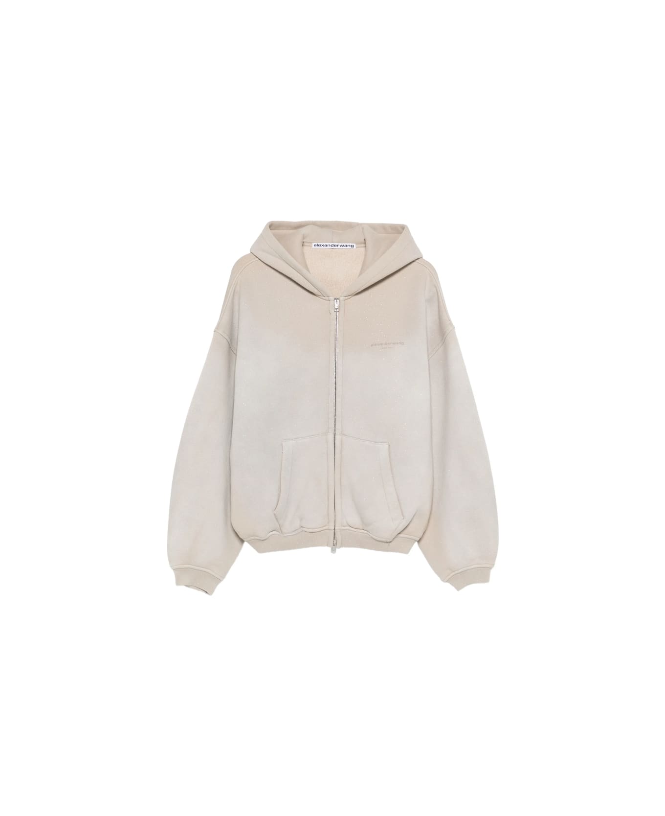 light beige hooded front zip fastening front pouch pocket tonal logo embroidery ribbed hem