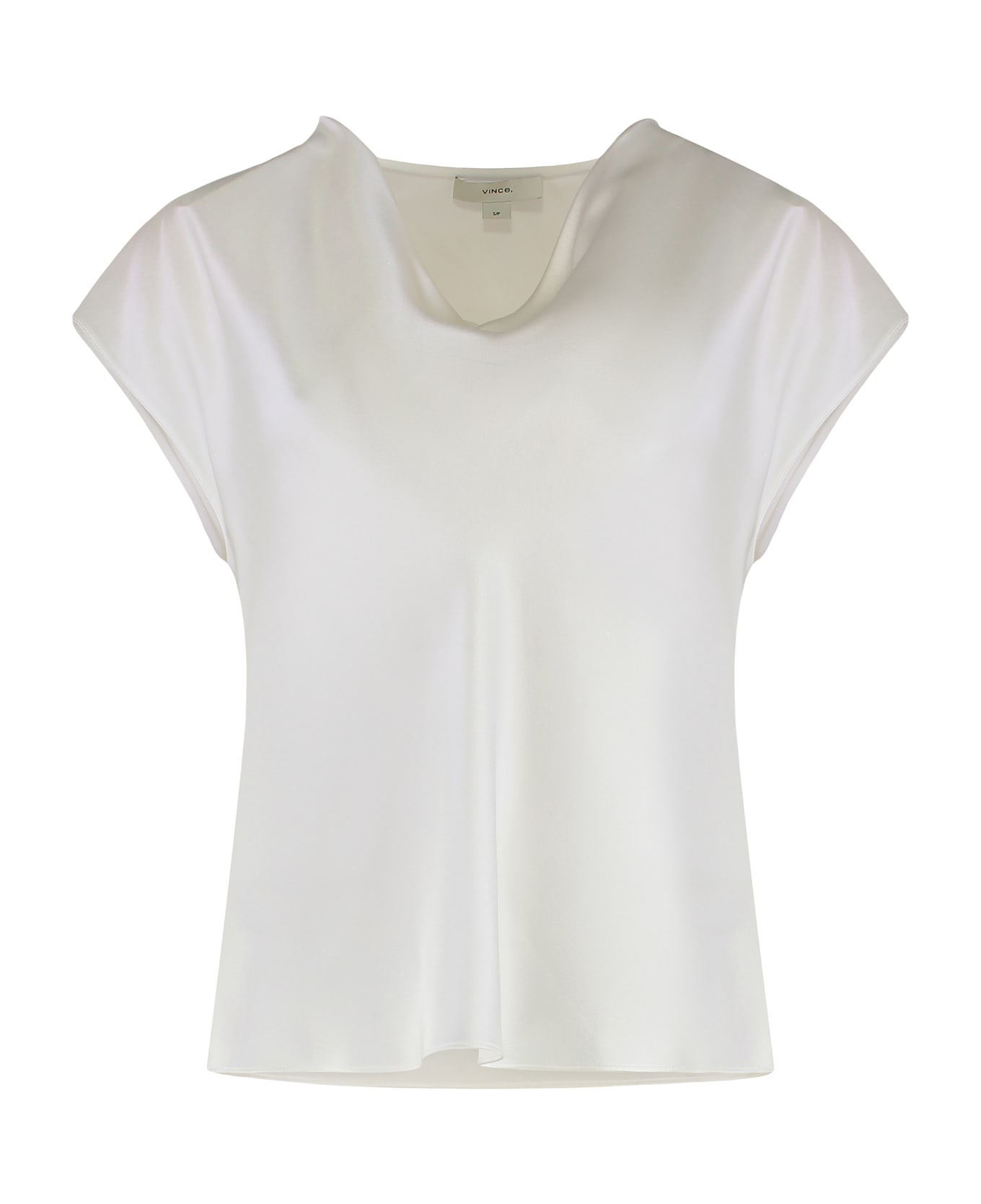 Lightweight and fresh white blouse, characterized by a simple and clean design. it has short raglan sleeves that offer a comfortable fit and a round neckline that provides a casual look. ideal for a daily outfit, it can be easily paired with different pieces.