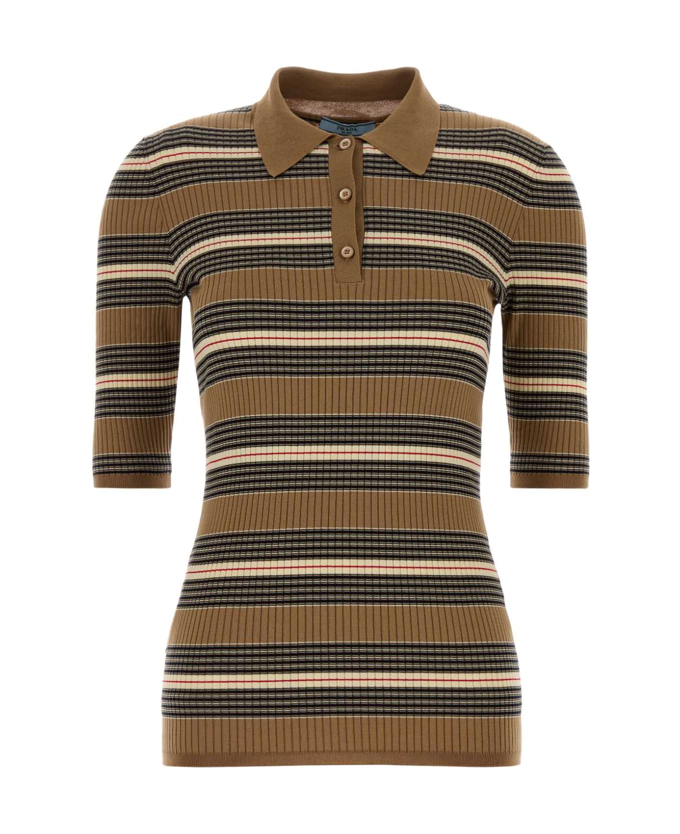 Embroidered Stretch Cotton Blend Polo Shirt from Prada