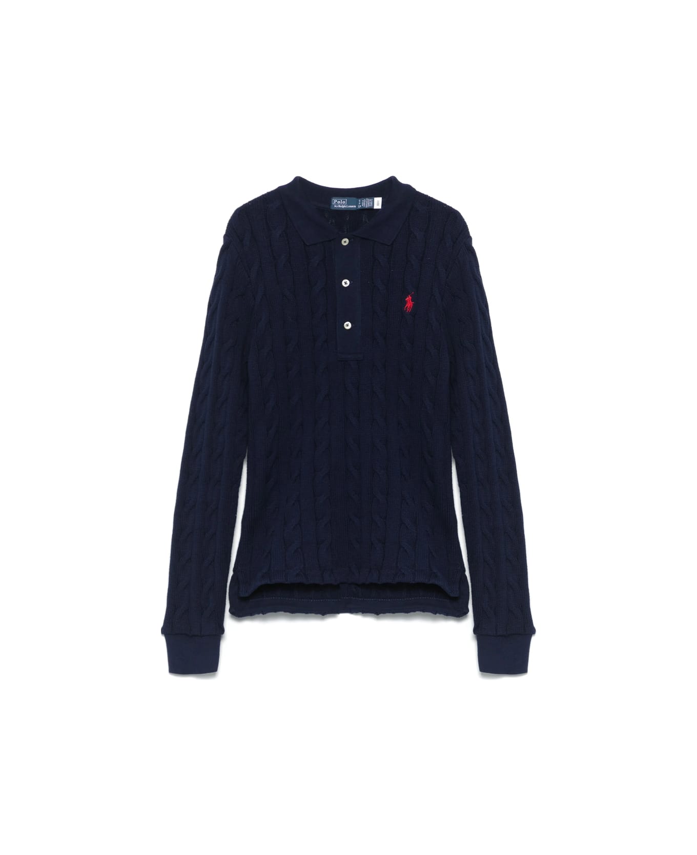 navy blue short front button fastening ribbed cuffs short side slits signature Polo Pony motif