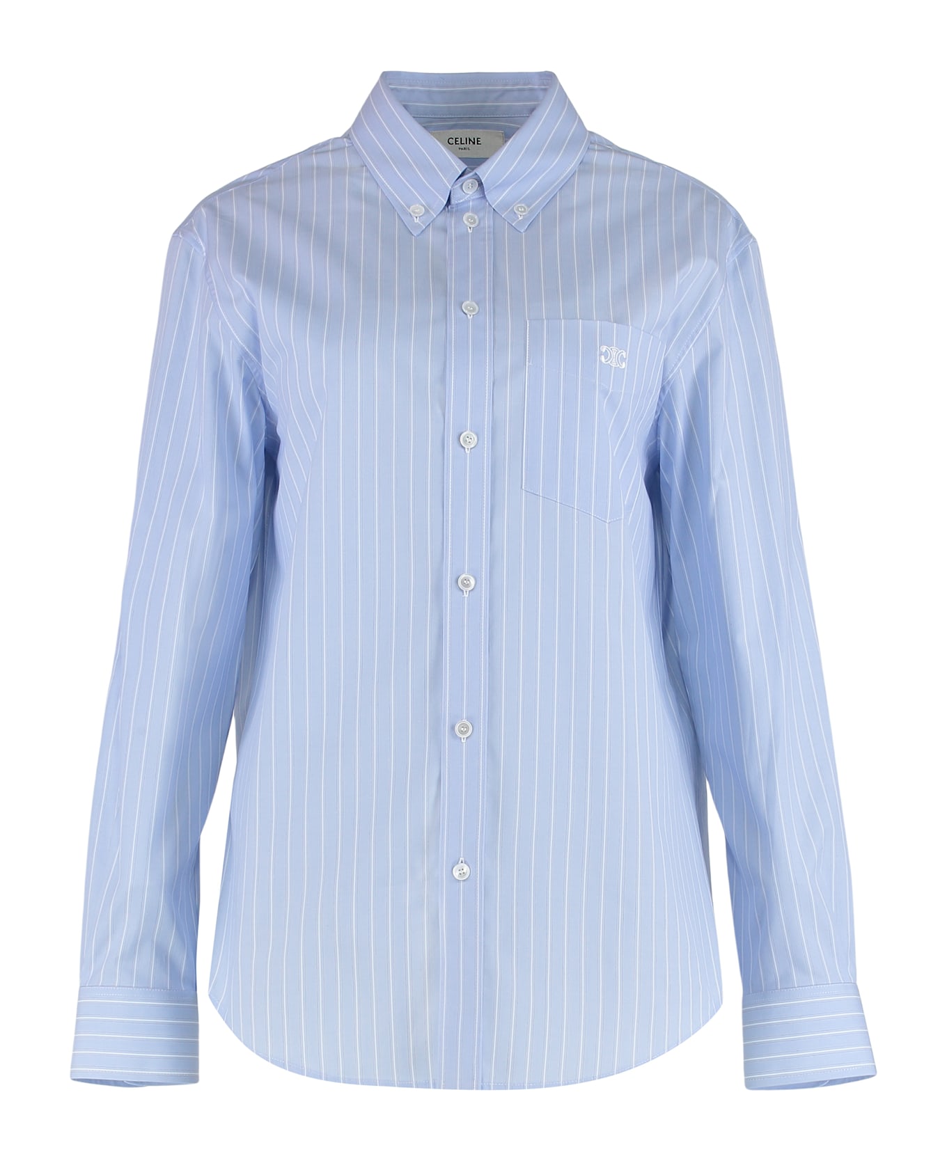 Long-sleeved shirt in an elegant blue color. features a classic collar and a front closure with mother-of-pearl buttons. made from soft striped fabric, it is ideal for a formal and casual look. perfect for any occasion, it pairs easily with pants or a skirt. 100% cotton Composition: 100% % Cotton