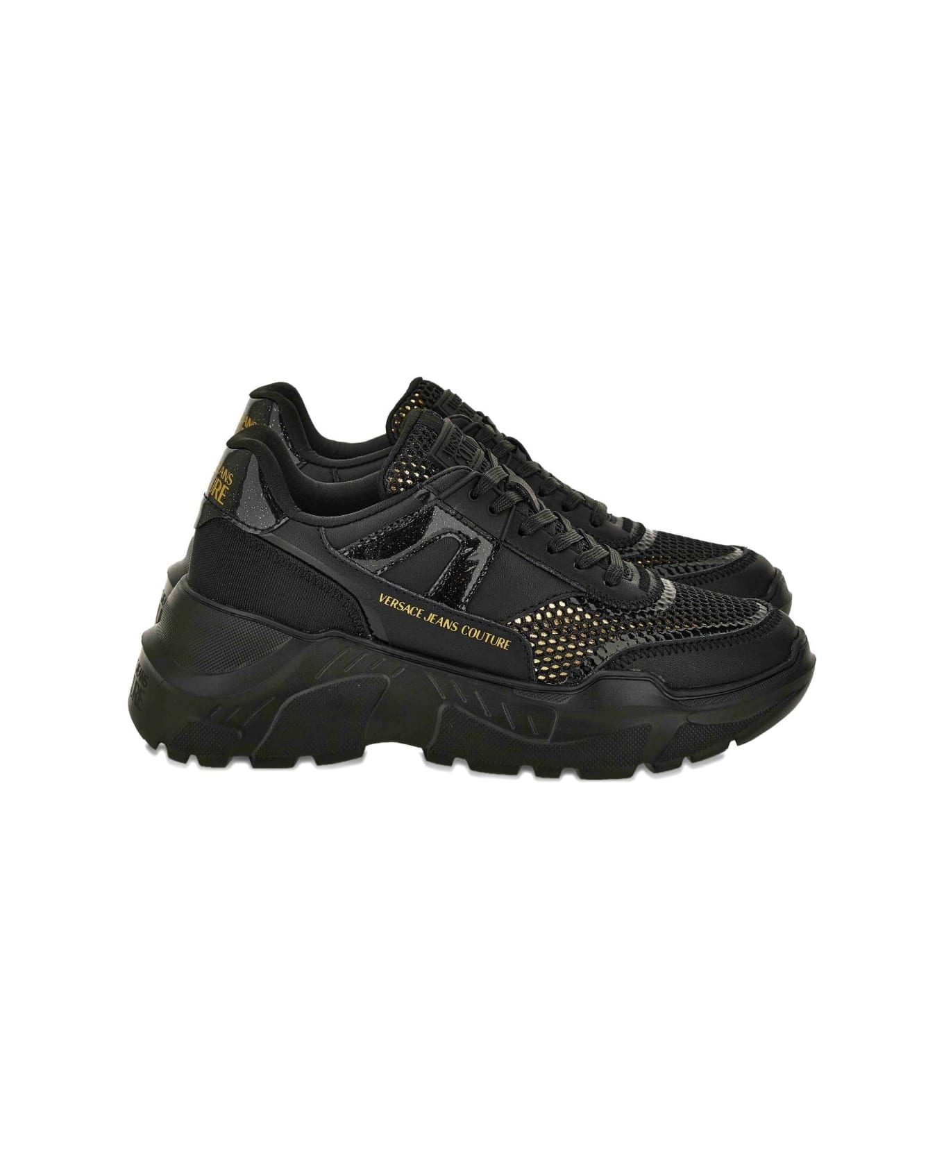 Versace Jeans Couture Chunky sneakers with inserts Features Black glitter inserts Mesh insert Chunky sole Lace-up closure Leather upper Composition Lining: 100% fabric Sole: 100% rubber Outer: 100% fabric