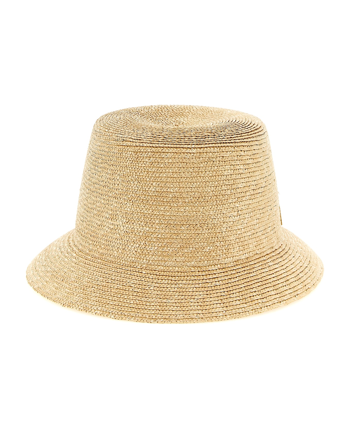 Braided straw hat, short brimmed Fedora, antiqued metal 'Cassandre' logo on the side, tonal grosgrain ribbon inside. Handcrafted product, any imperfections are to be considered characteristics of uniqueness. Composition: 100% straw